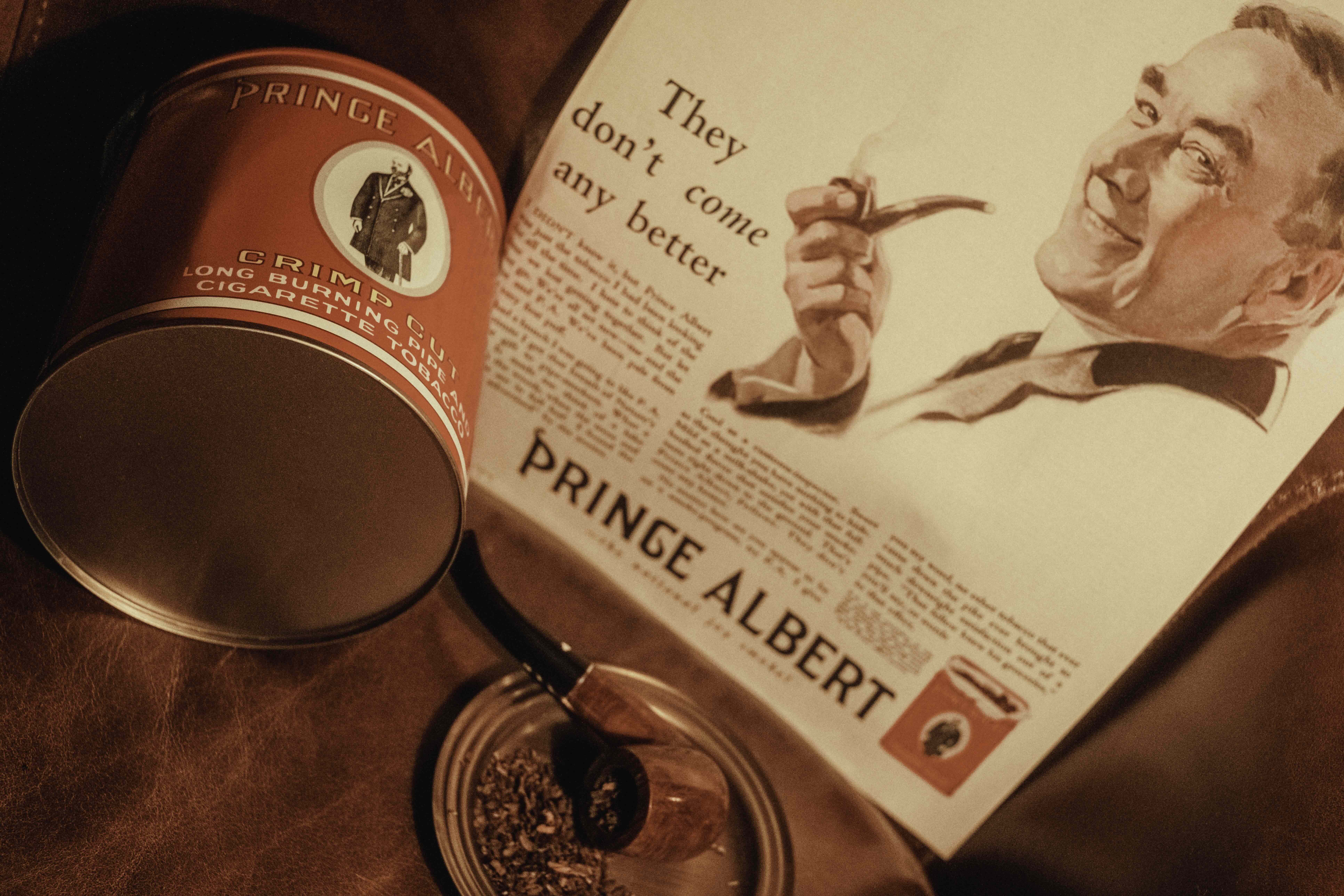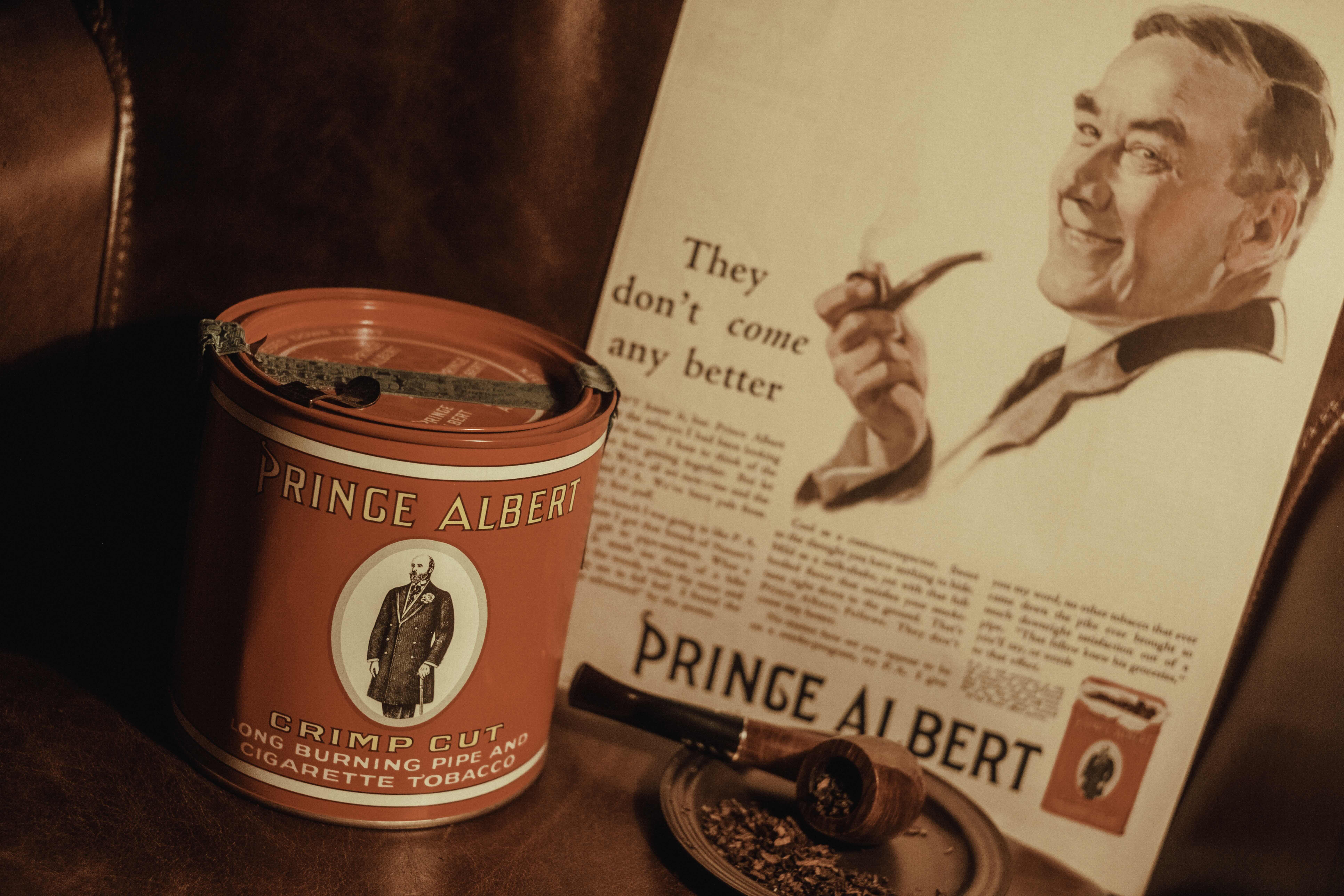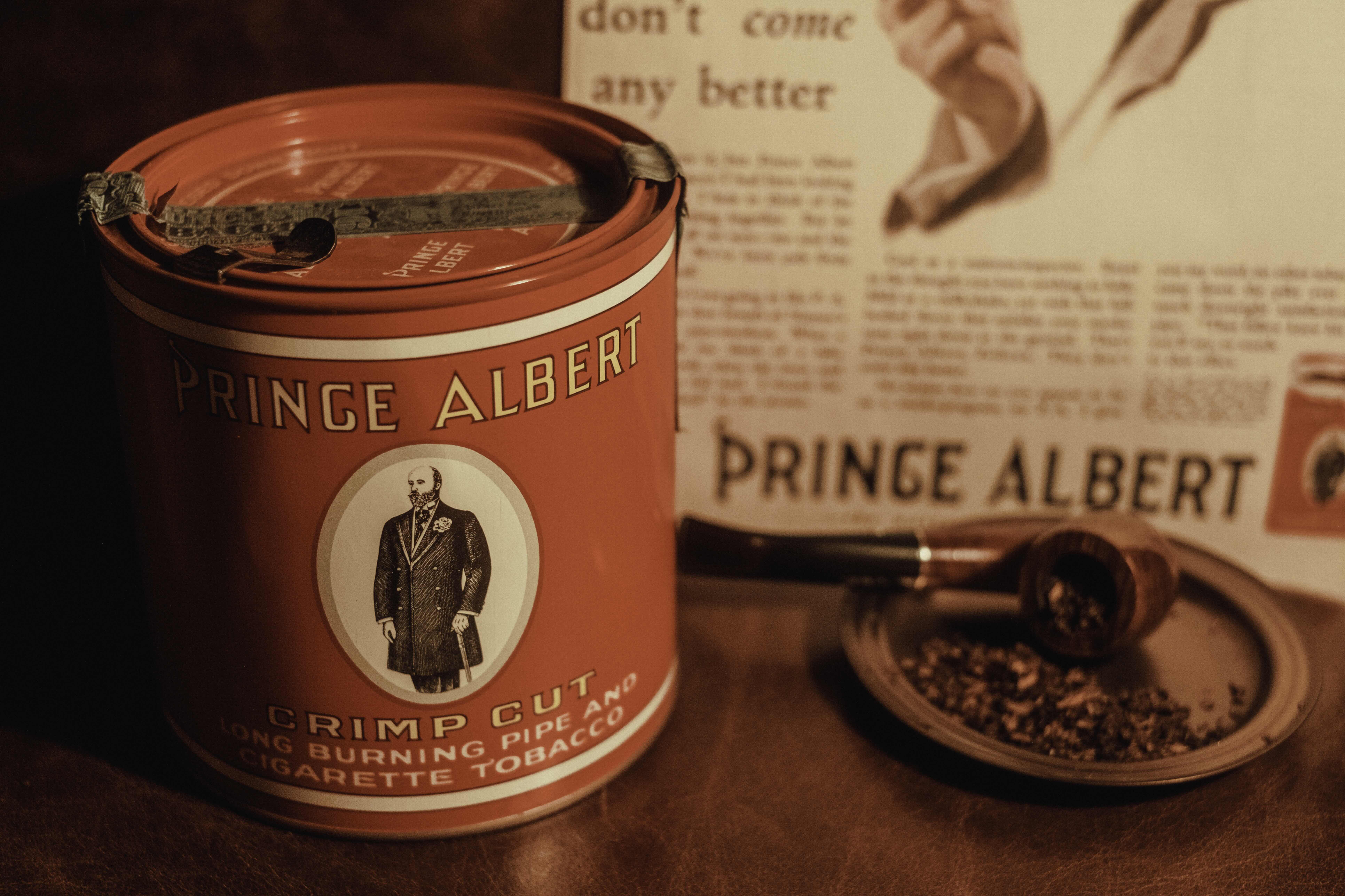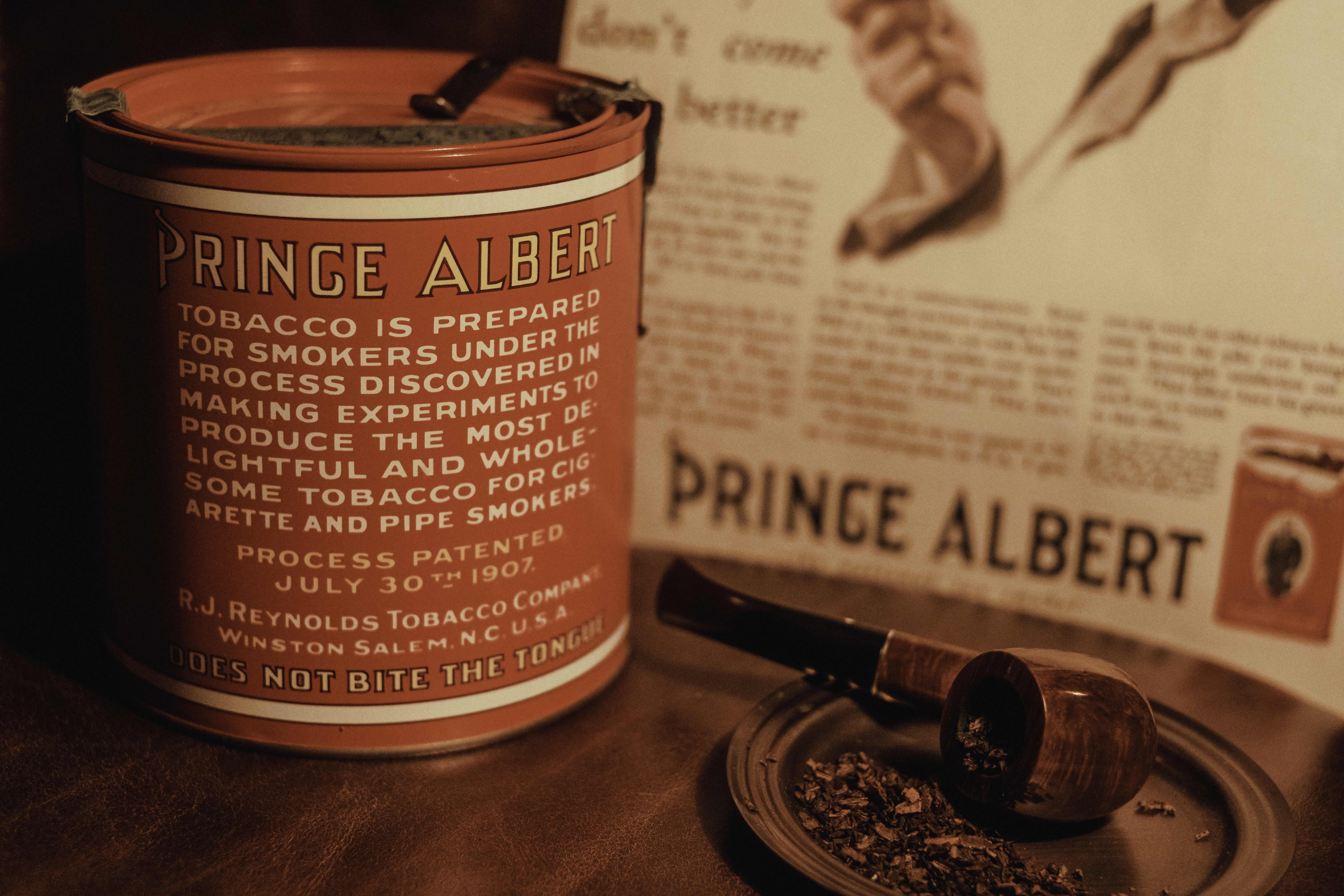 Prince Albert was more than a common tobacco. It was a triumph of American ingenuity. In 1907, R.J. Reynolds patented a process that removed harshness while preserving the soul of the leaf, creating a blend that “does not bite the tongue” and “burns cool, clean, and even.” Inside this tin is that same proud formula: air-cured Burley from Kentucky and Tennessee, cut to a perfect crimp for an even draw and steady burn. The flavor became a national signature, mellow and sweet with hints of cocoa, molasses, and toasted grain. It was a smooth, companionable smoke that filled barbershops, train depots, and front porches from Maine to Monterey. The slogan said, “Bite’s out, pleasure’s in,” and the nation believed it.