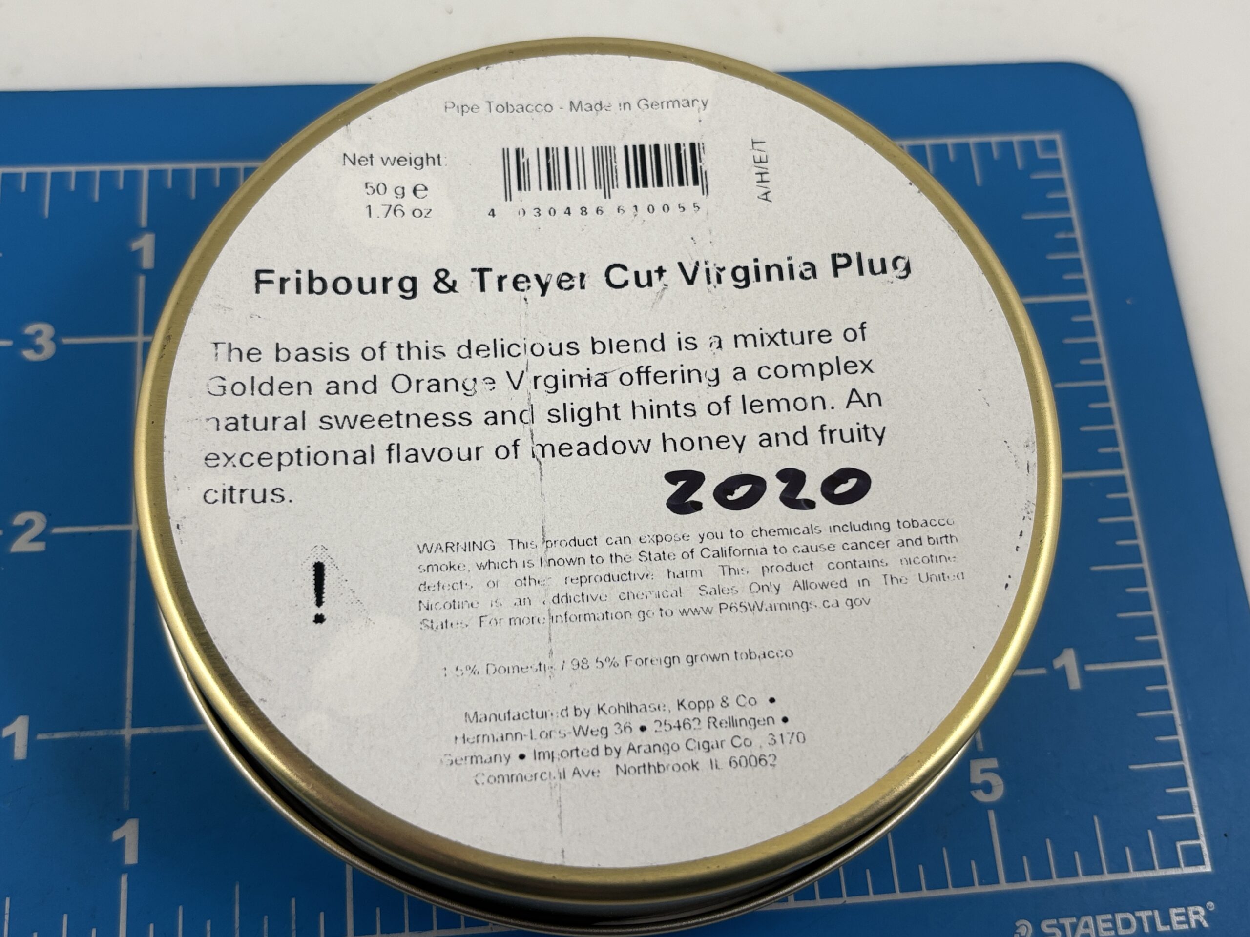 Excellent Sealed 2020 Fribourg & Treyer Cut Virginia Plug Sealed 50g. Tin