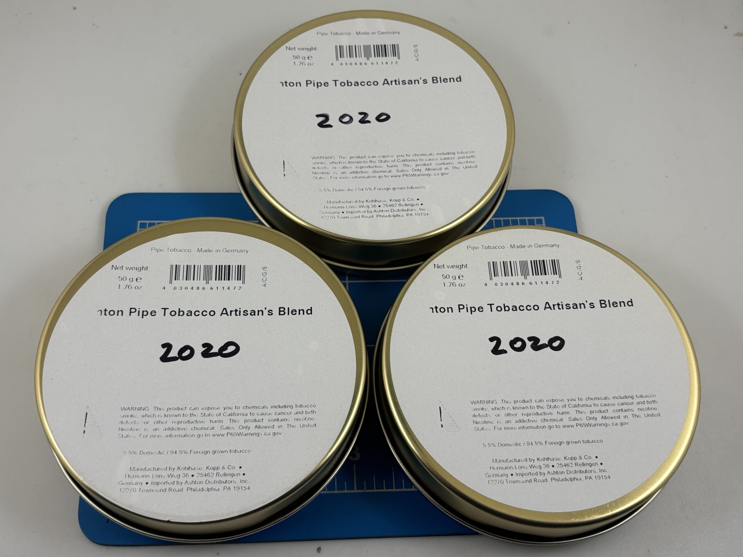 Lot of 3 Excellent Sealed 2020 Ashton Artisan's Blend 50g. Tins