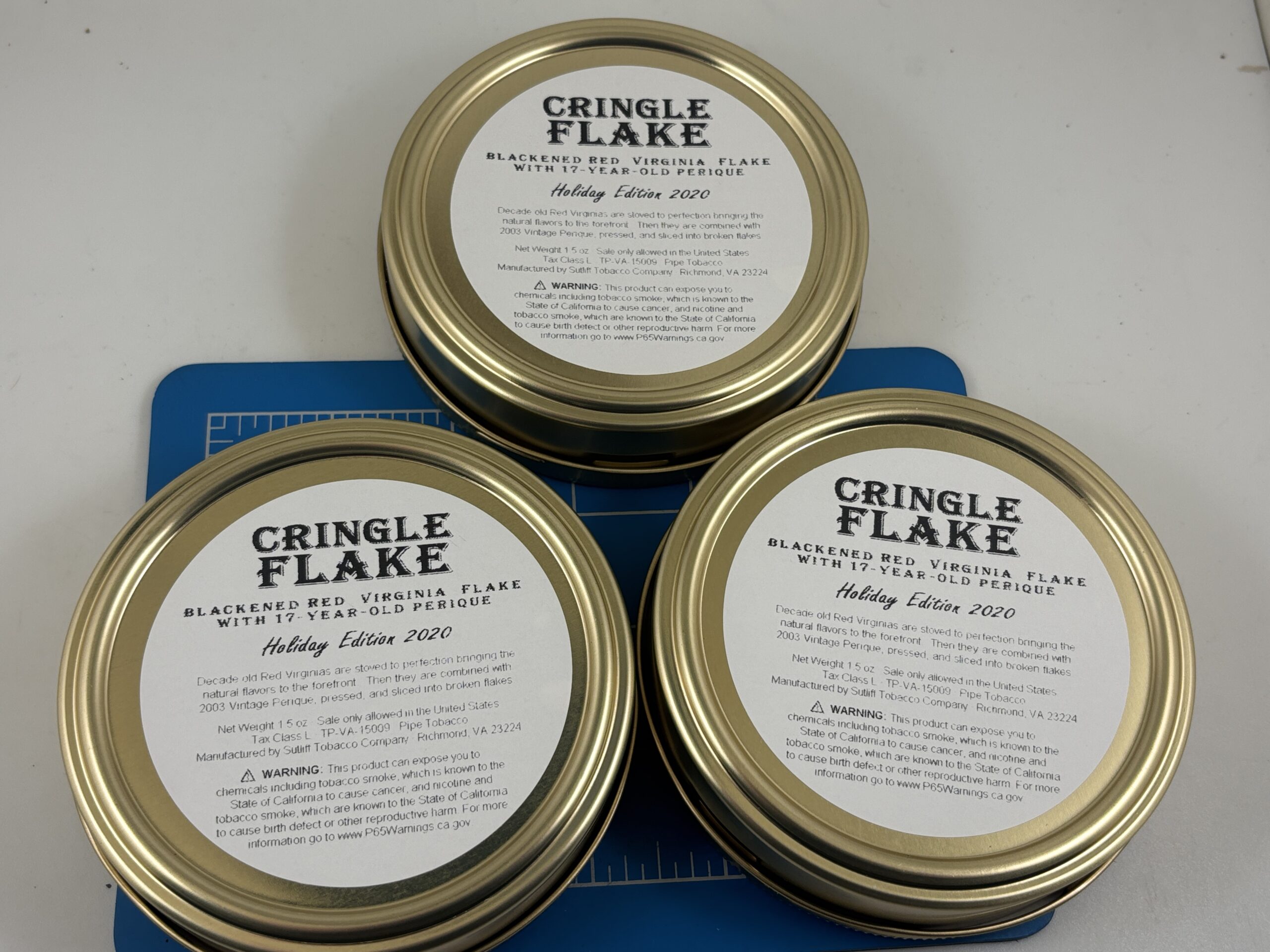 Lot of 3 Excellent Sealed Sutliff Cringle Flake Holiday Edition 2020 Tobacco Tins.