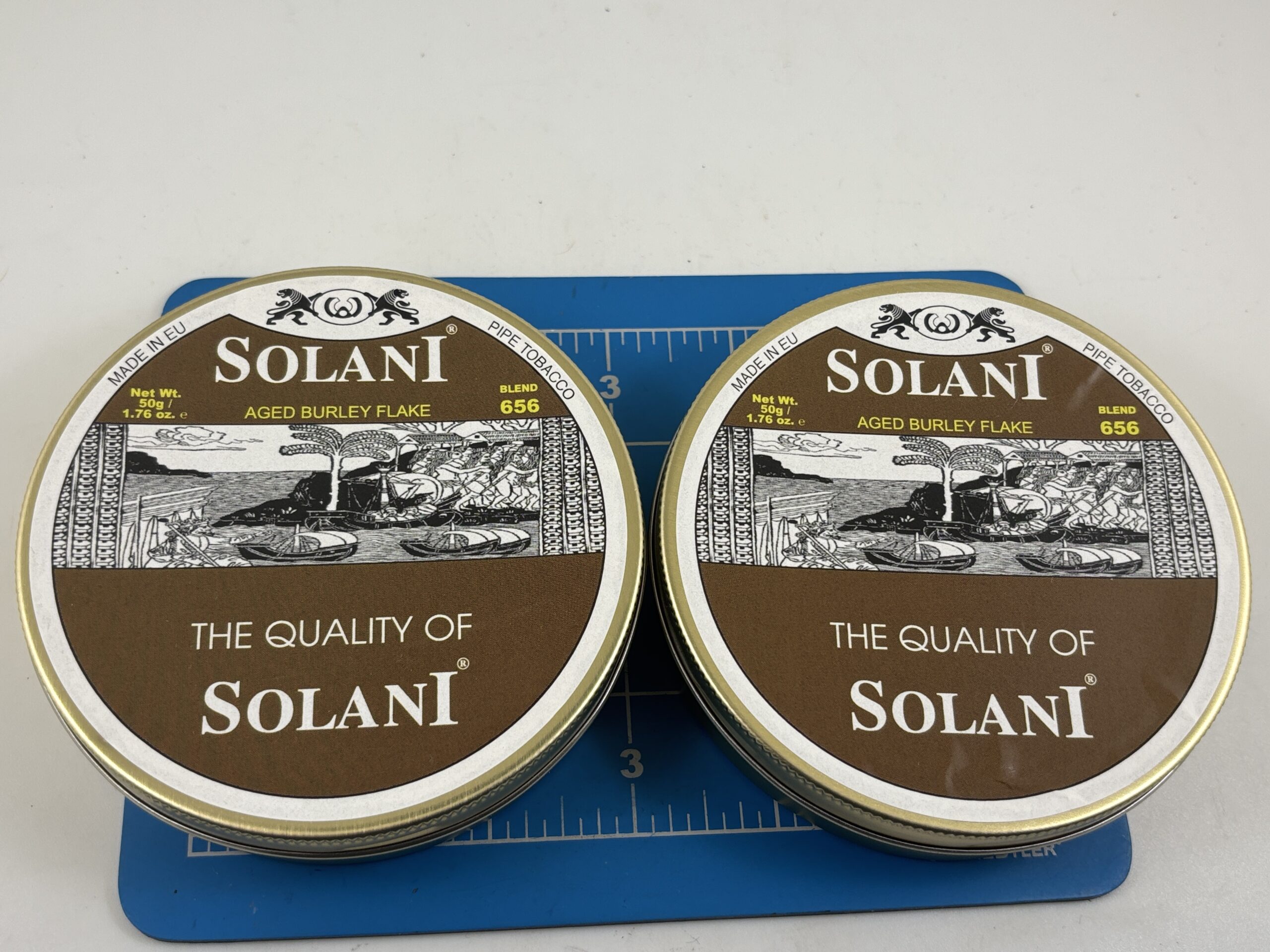 Lot of 2 Excellent Sealed 2020 Solani Aged Burley Flake Blend 656 50g. Tins.