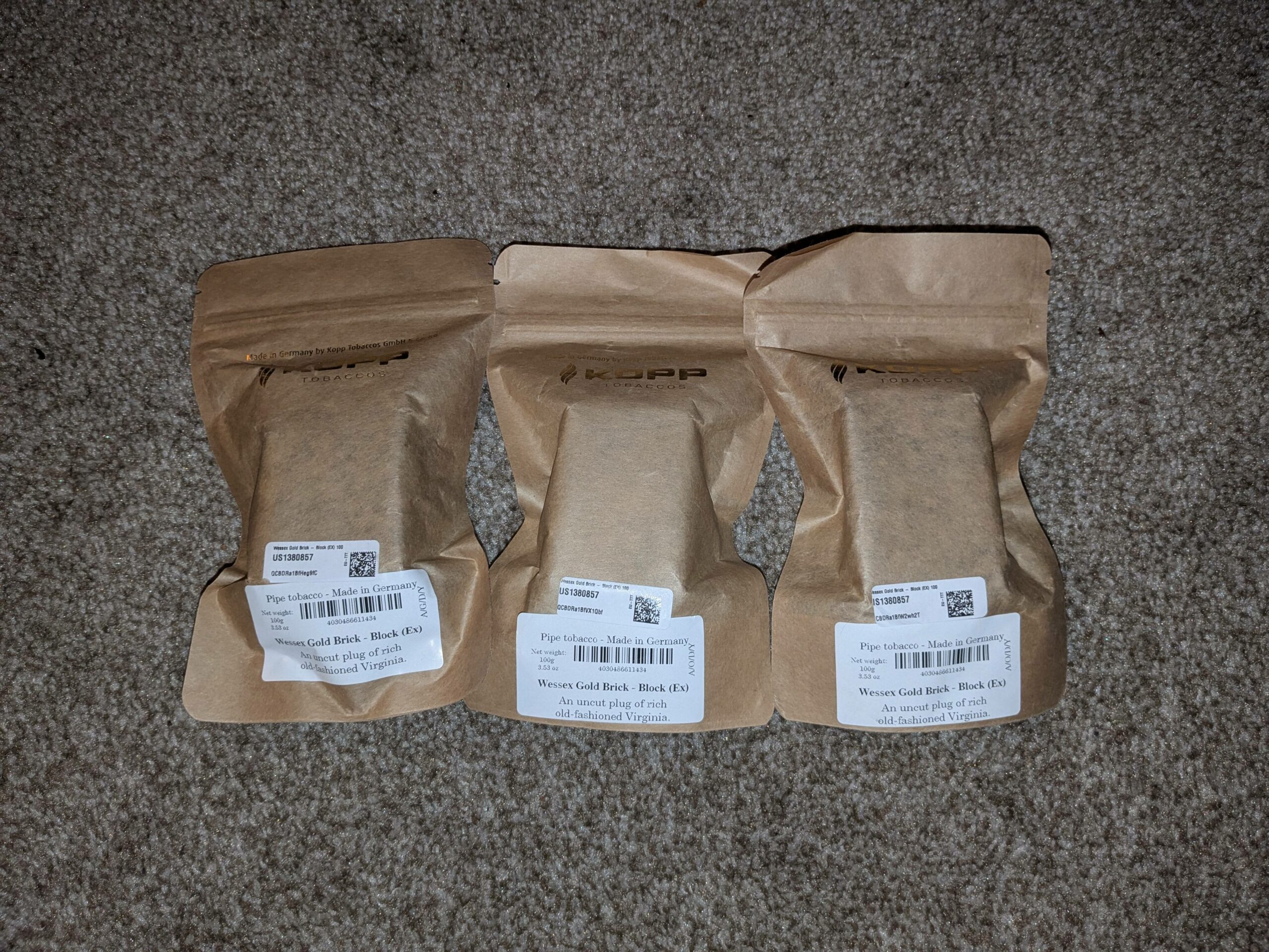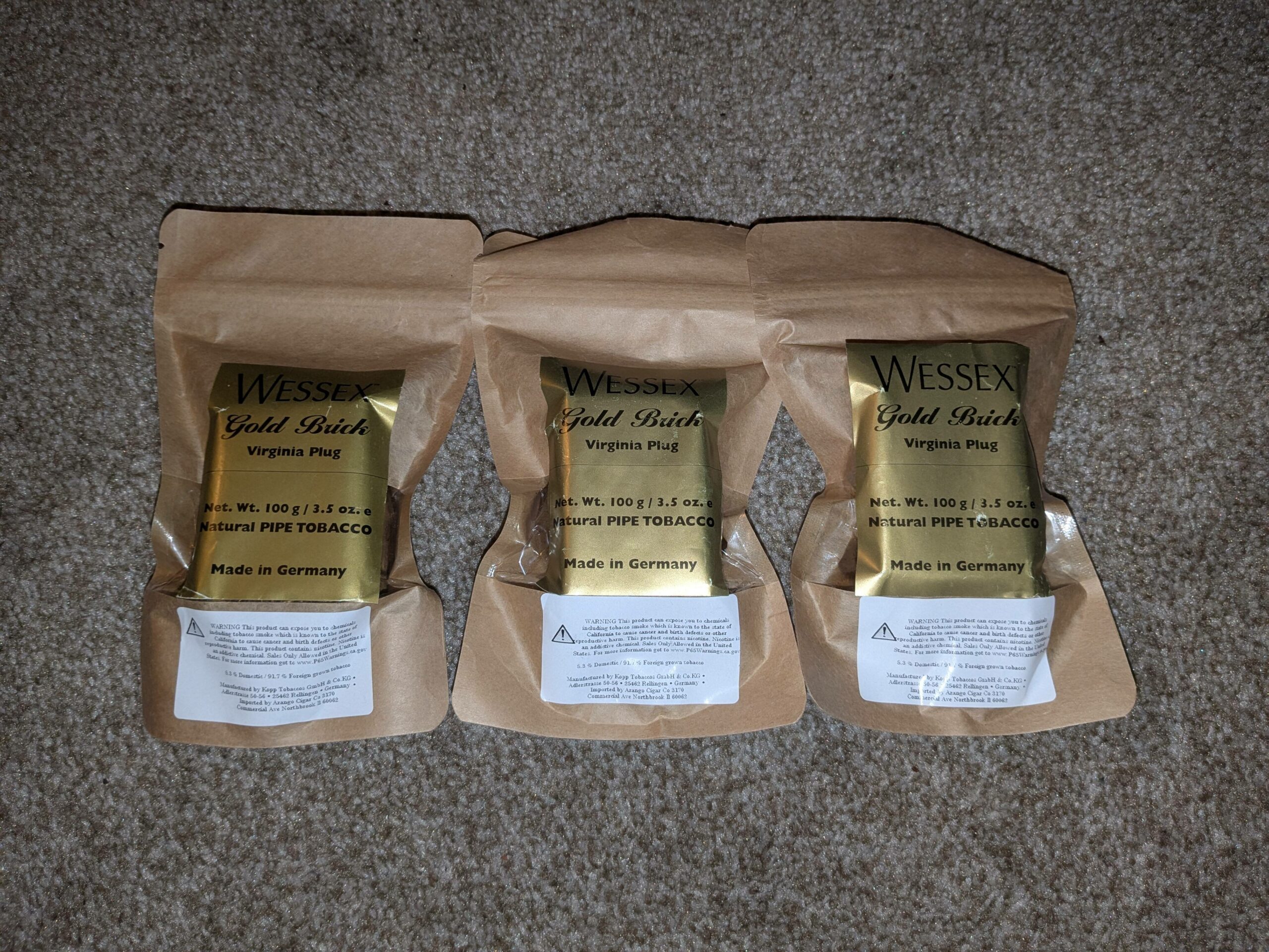 This auction is for 3 brand new, sealed bags of Gold Brick by Wessex.