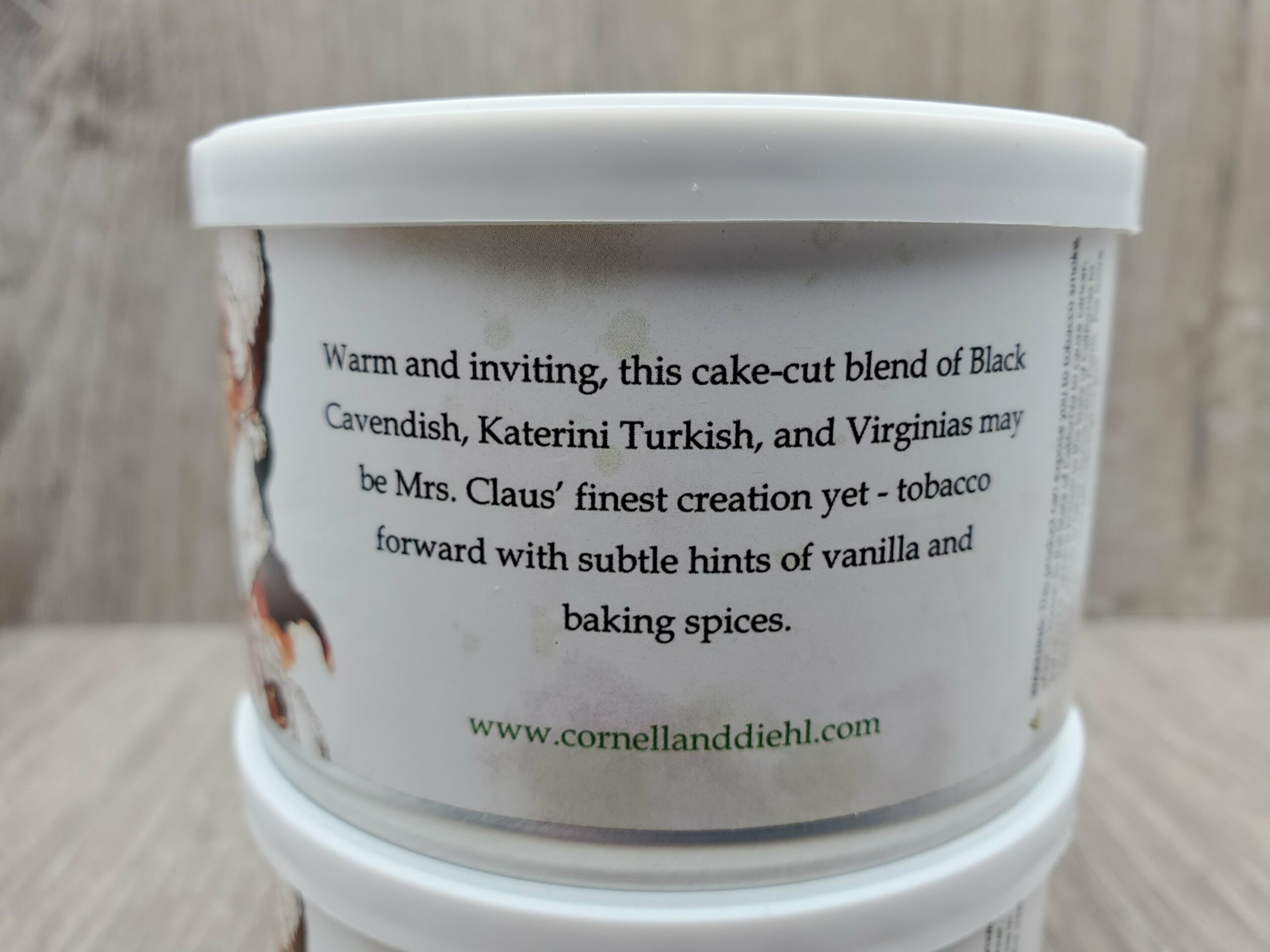 "Warm and inviting, this cake-cut blend of Black Cavendish, Katerini Turkish, and Virginias may be Mrs. Claus' finest creation yet - tobacco forward with subtle hints of vanilla and baking spices."