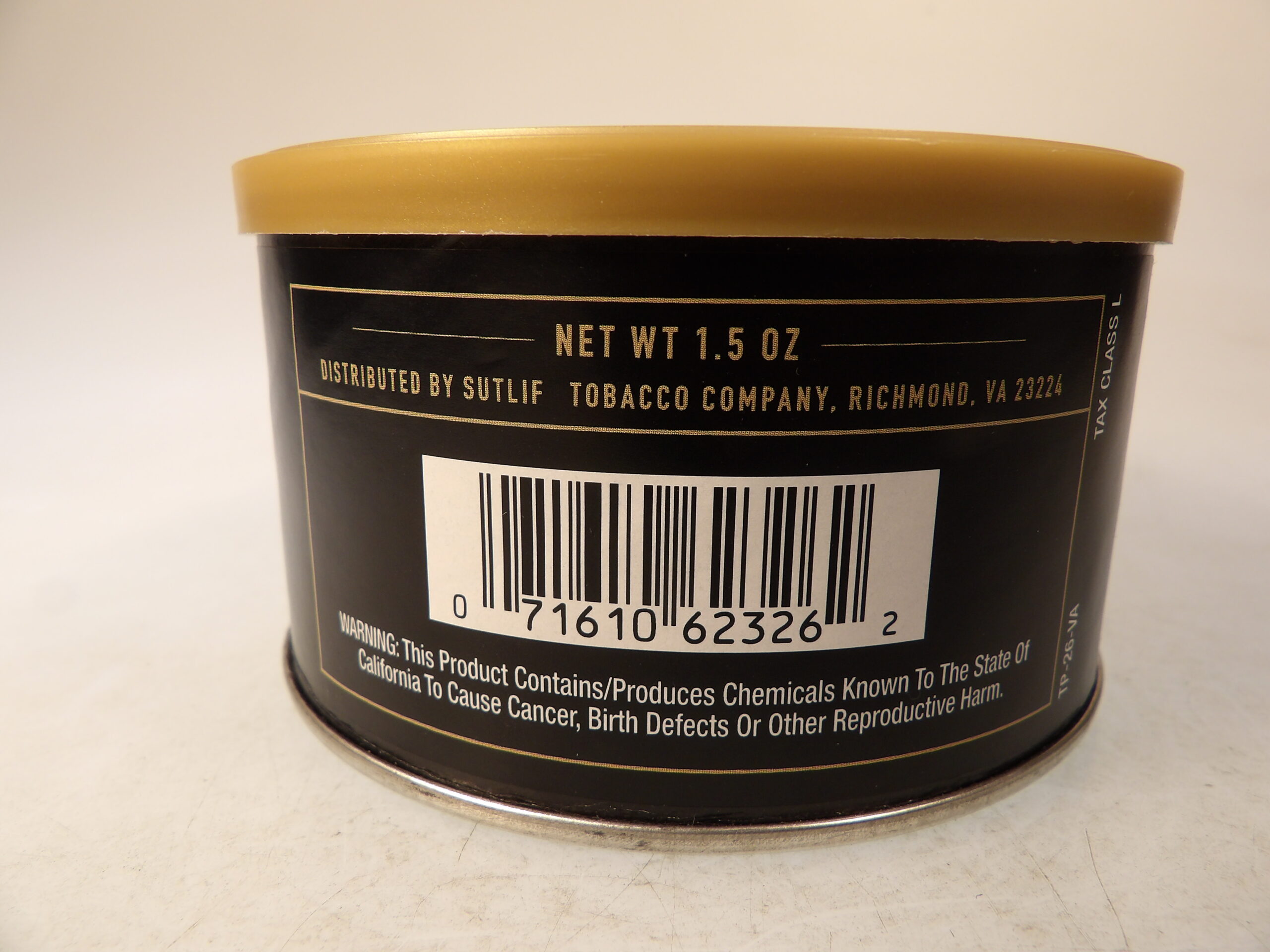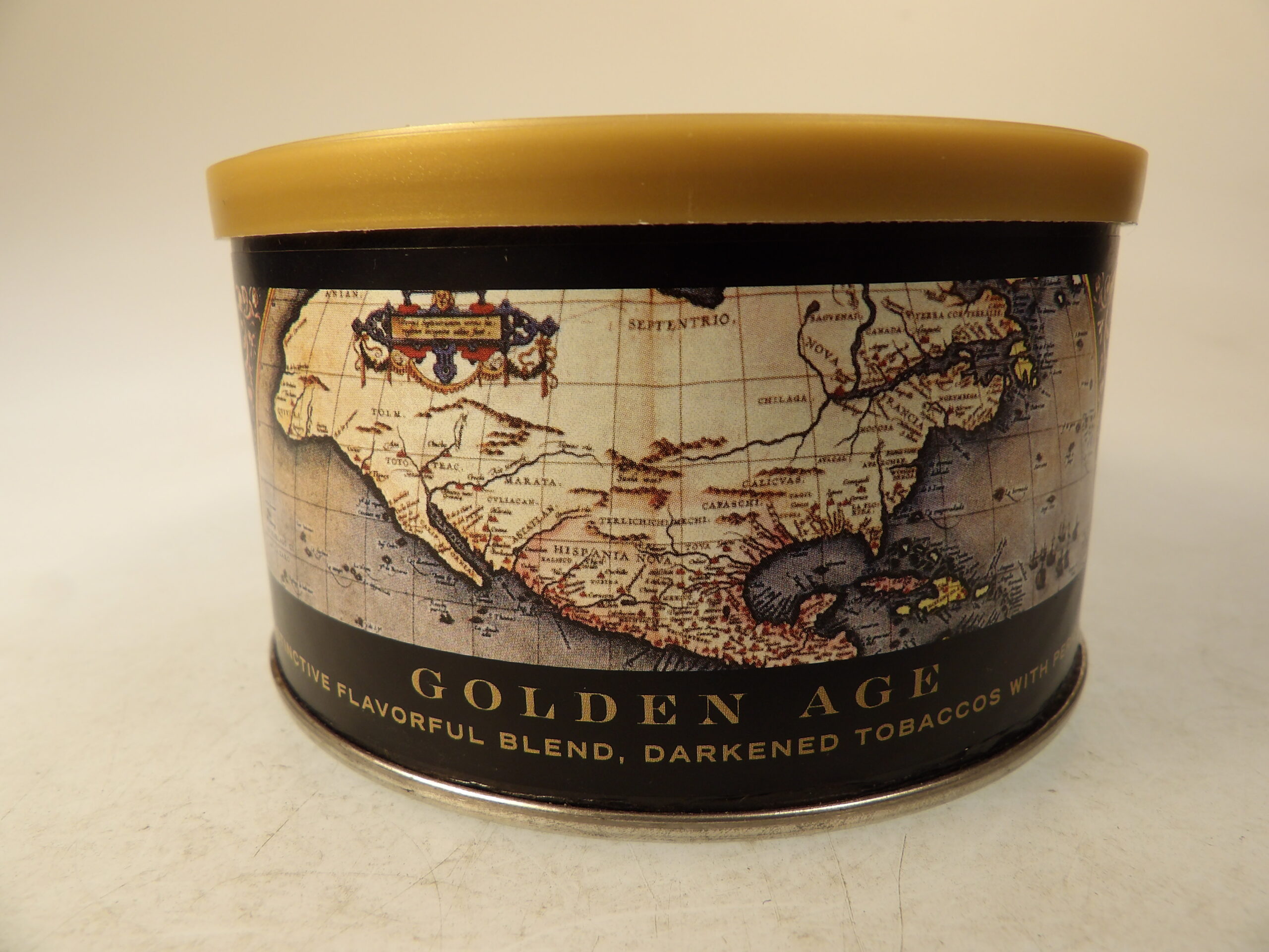 DESCRIPTION: Here is an auction sale. It is a Collectible Sutliff Golden Age Smoking Mixture Sealed Tin 1.5 oz’s Pipe Tobacco from 2015. Golden Age combines a variety of hand-selected Virginias, chosen for their sweetness, along with a nice share of Acadian Perique to create a blend with a rich fruitiness and an undercurrent of spice. The can has a small pin hole corrosion on the bottom side. The tobacco may be drier than fresh. Good Luck Bidding and Thanks for Stopping by.
