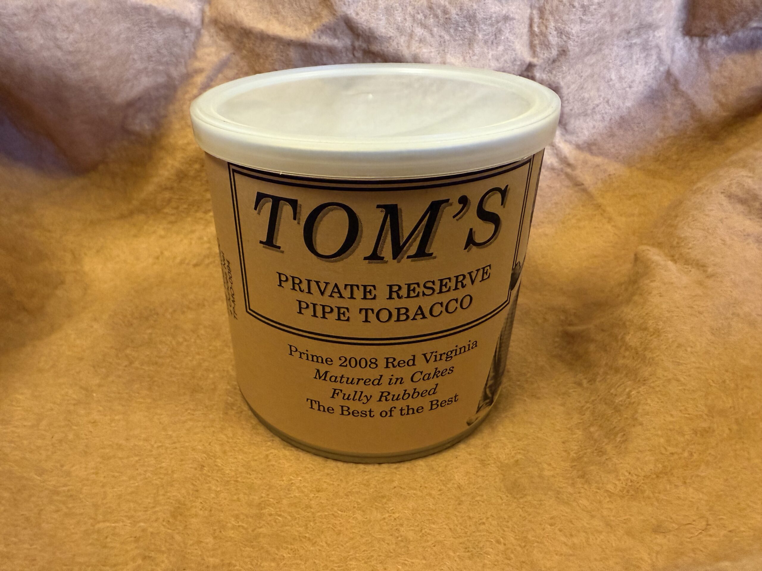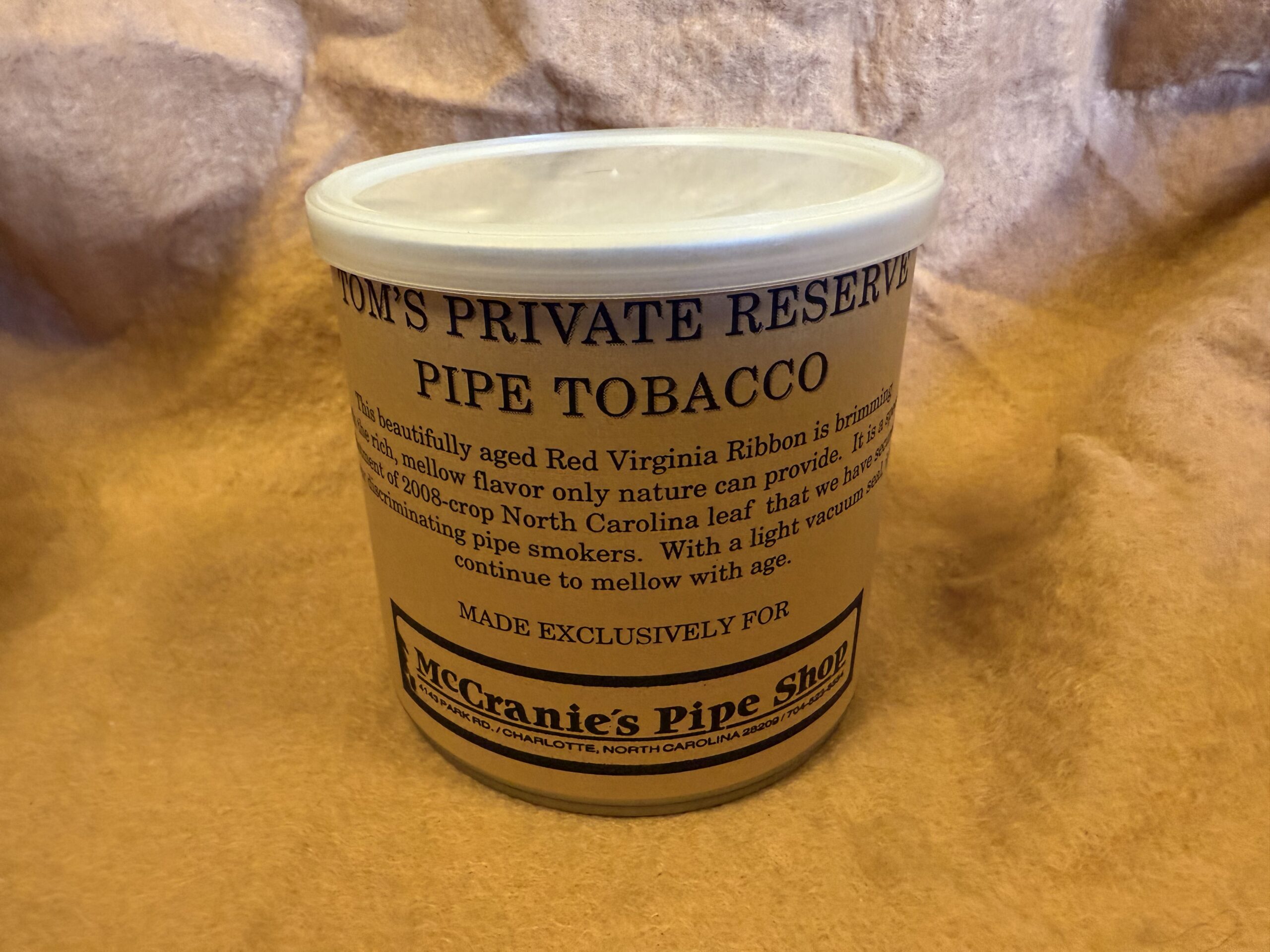 This is a 4oz tin of McCranie's Tom's Private Reserve. This was a special tinning of Red Ribbon in a 4oz tin for personal use. Only sold on very few occasions by McCranie's. Sealed and kept indoors.