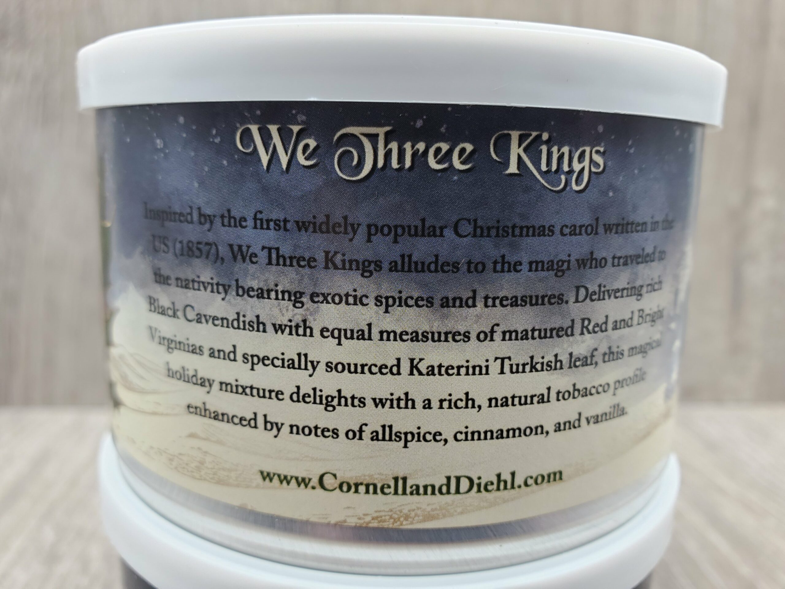 "Delivering rich Black Cavendish with equal measures of matured Red and Bright Virginias and specially sourced Katerini Turkish leaf, this magical holiday mixture delights with a rich, natural tobacco profile enhanced by notes of allspice, cinnamon, and vanilla."