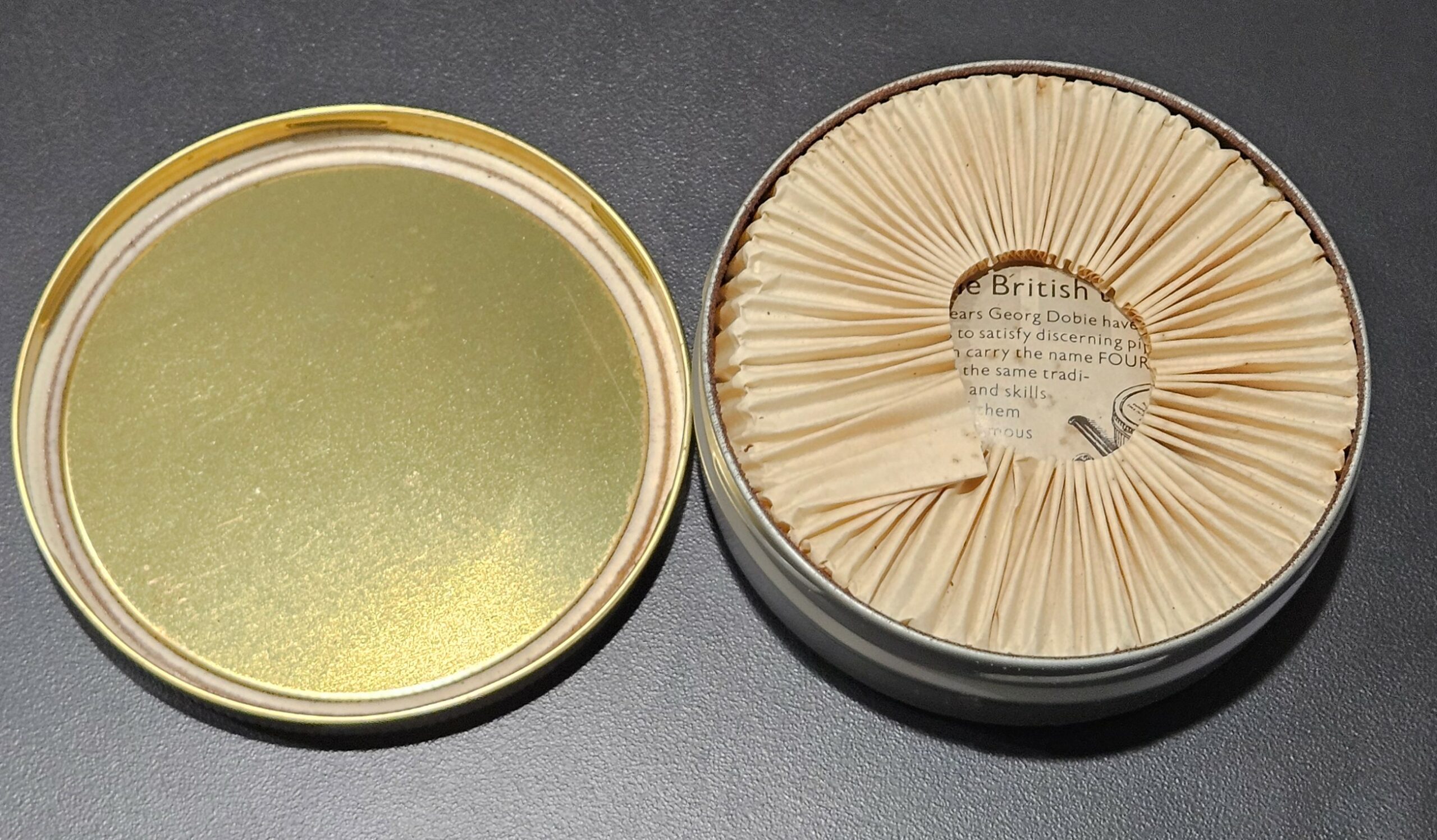 Full, but tin has lost it's seal. Should be salvageable with careful rehydration.