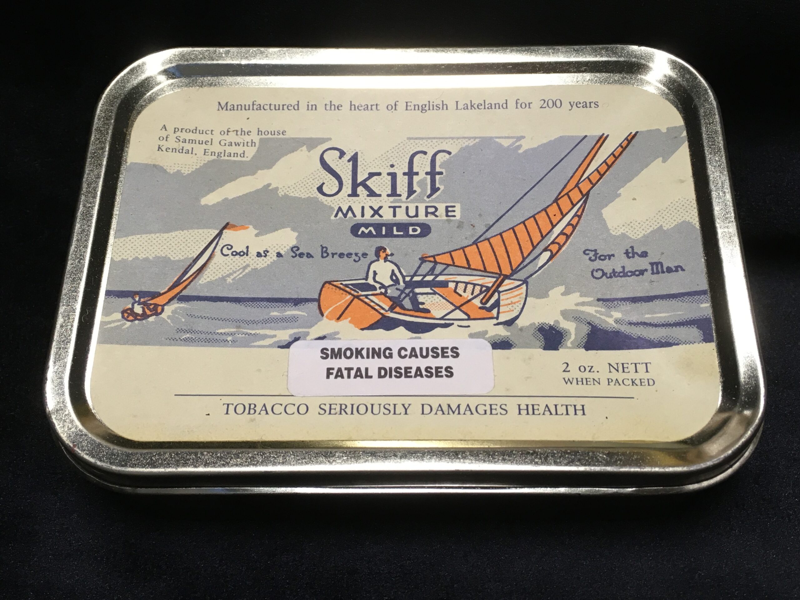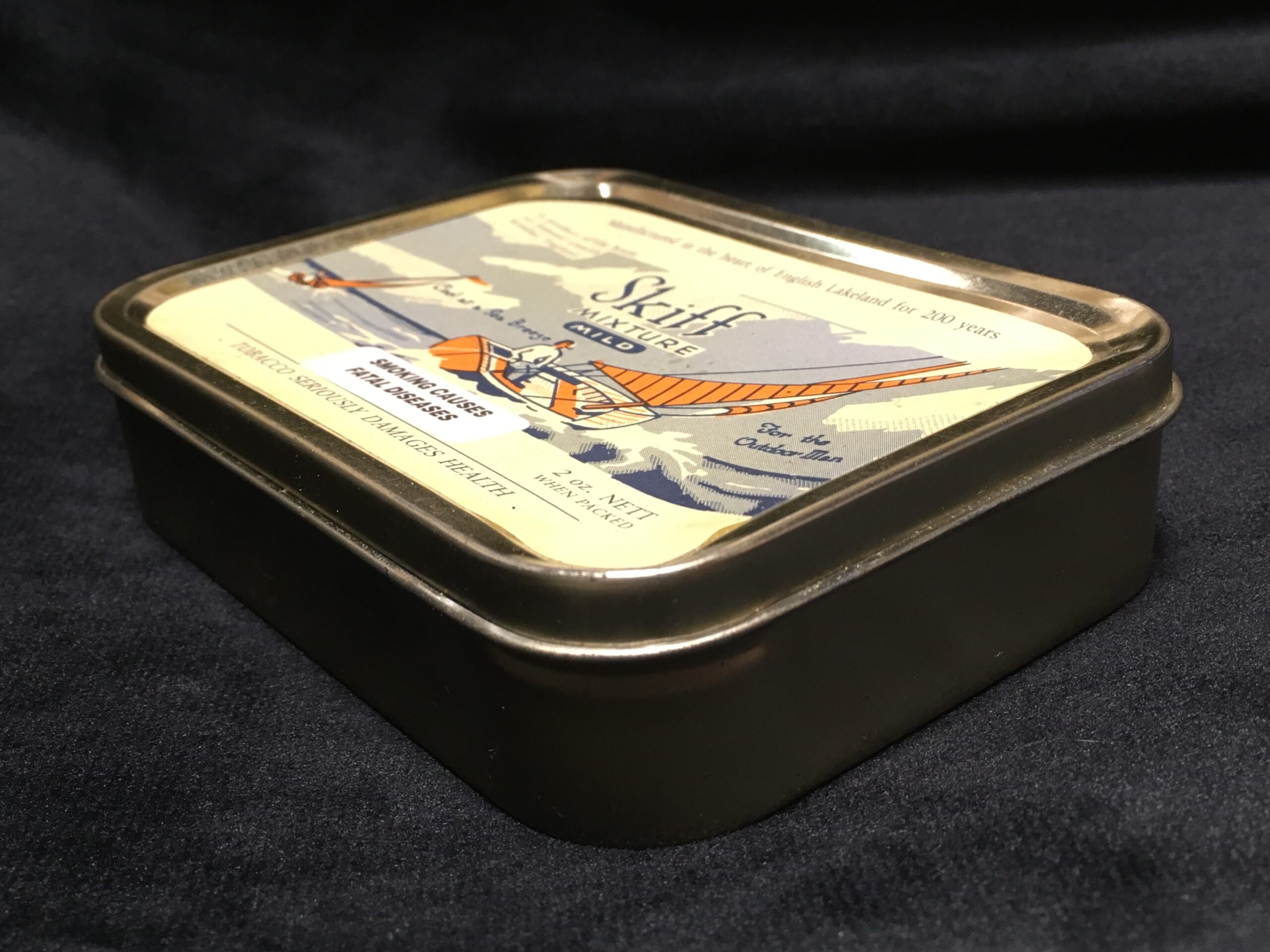 Vintage Samuel Gawith SKIFF MIXTURE MILD (2000s?), in sealed tin. "2 oz. NETT WHEN PACKED" Manufactured in the heart of English Lakeland for 200 years"