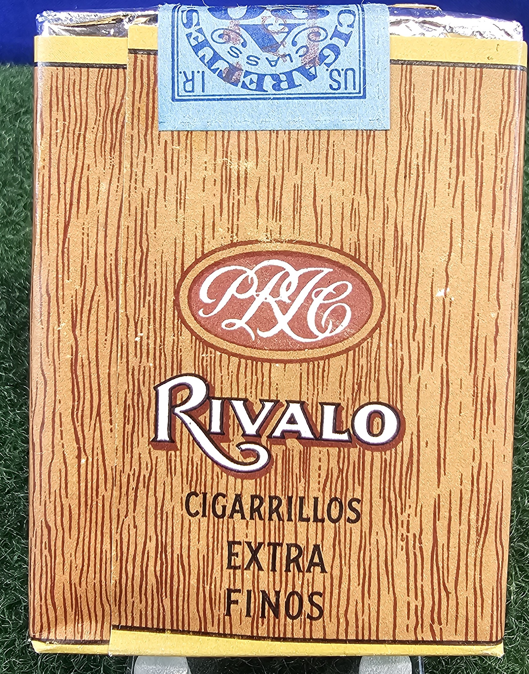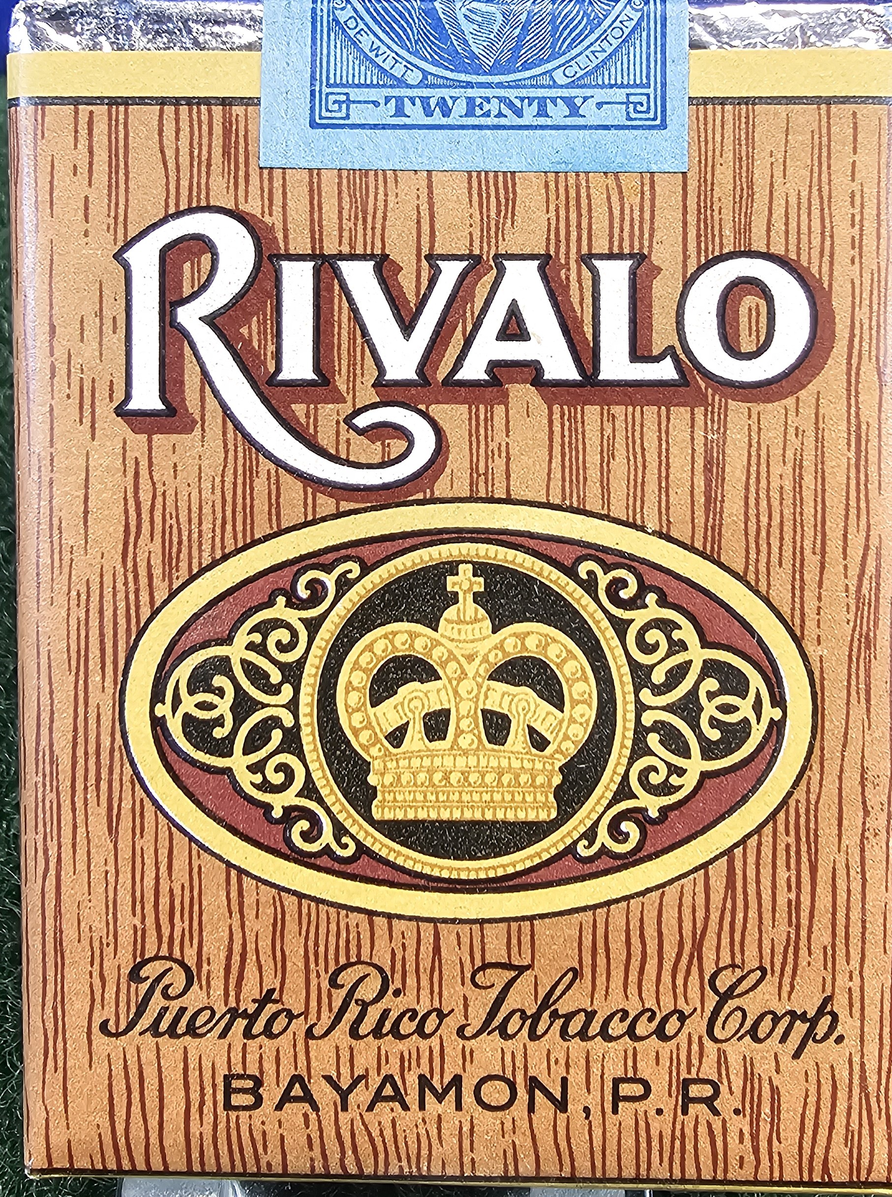 Rivalo cigarettes were made in Puerto Rico. This pack is sealed with the tax stamp present, and was produced in the 1940s.