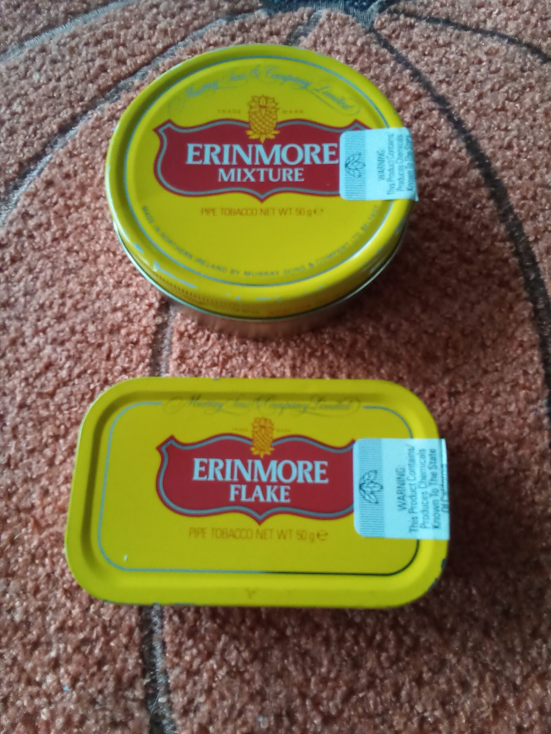 One tin each of Murray made Erinmore pipe tobacco, from the early 90's, painted lids, sealed, spent their entire life in my temperature controlled cellar, these are the real deal!