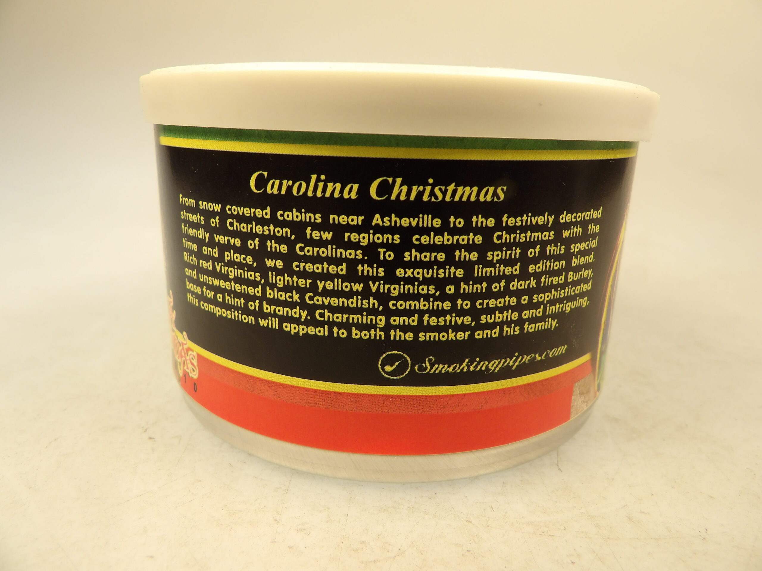 DESCRIPTION: Here is an auction for sale. It is a Collectible Smoking Pipes Low Country Carolina Christmas by Cornell & Diehl 2 oz’s Sealed Pipe Tobacco Tin 2010. This tin is sealed and has never been opened. From snow covered cabins near Asheville to the festively decorated streets of Charleston, few regions celebrate Christmas with the friendly verve of the Carolinas. To share the spirit of this special time and place, we created this exquisite limited-edition blend. Rich red Virginias, lighter yellow Virginias, a hint of dark fired Burley, and unsweetened black Cavendish, combine to create a sophisticated base for a hint of brandy. Charming and festive, subtle and intriguing, this composition will appeal to both the smoker and his family. Good Luck Bidding and Thanks for Stopping by.