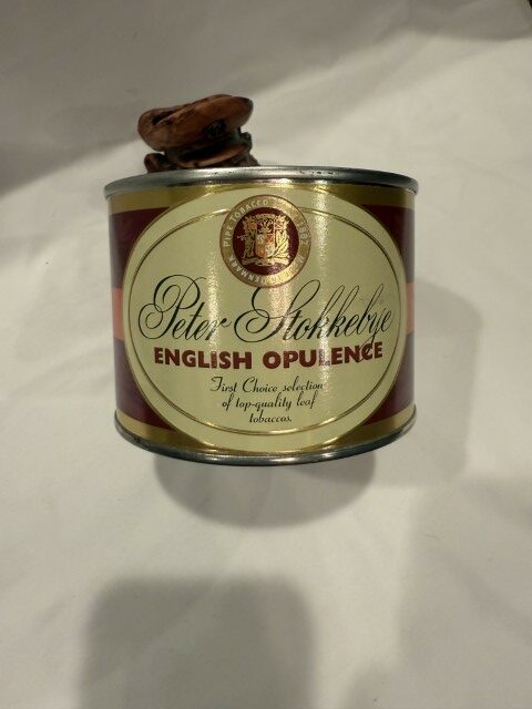100g sealed tin of Peter Stokkebye's English Opulence pipe tobacco, likely from 2002.