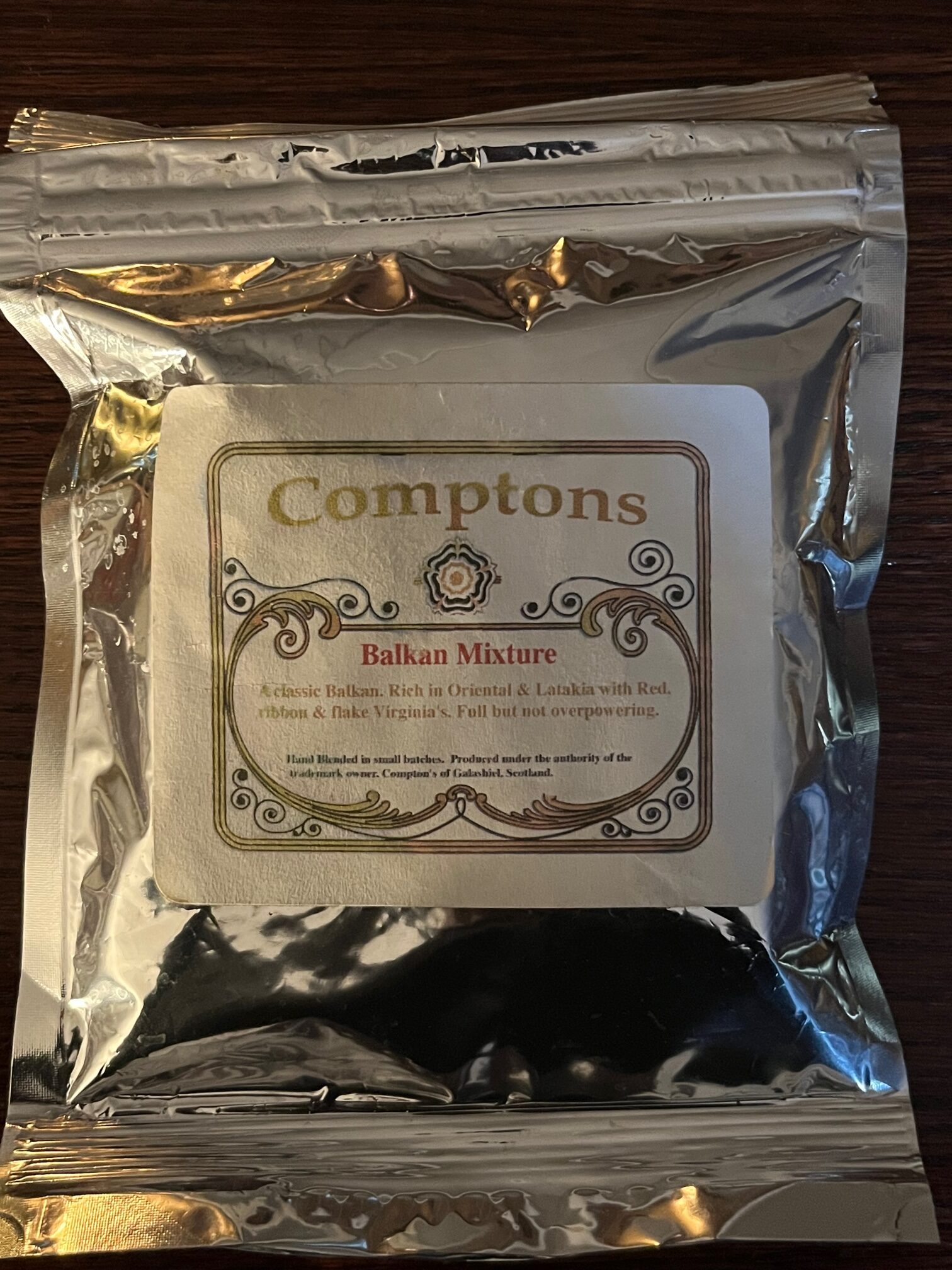 A true Balkan with the main note being Oriental, a large amount of latakia with Turkish on a base of red, bright, and flake Virginias. A classic Balkan. Rich in Oriental and latakia with red ribbon and flake Virginias.