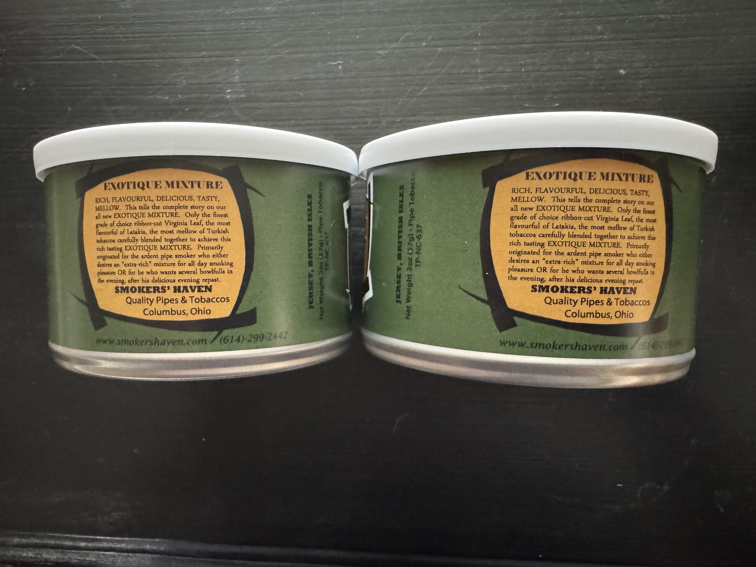 Exotique Mixture Smokers' Haven 2oz. 2 Tins. Excellent Sealed Condition.