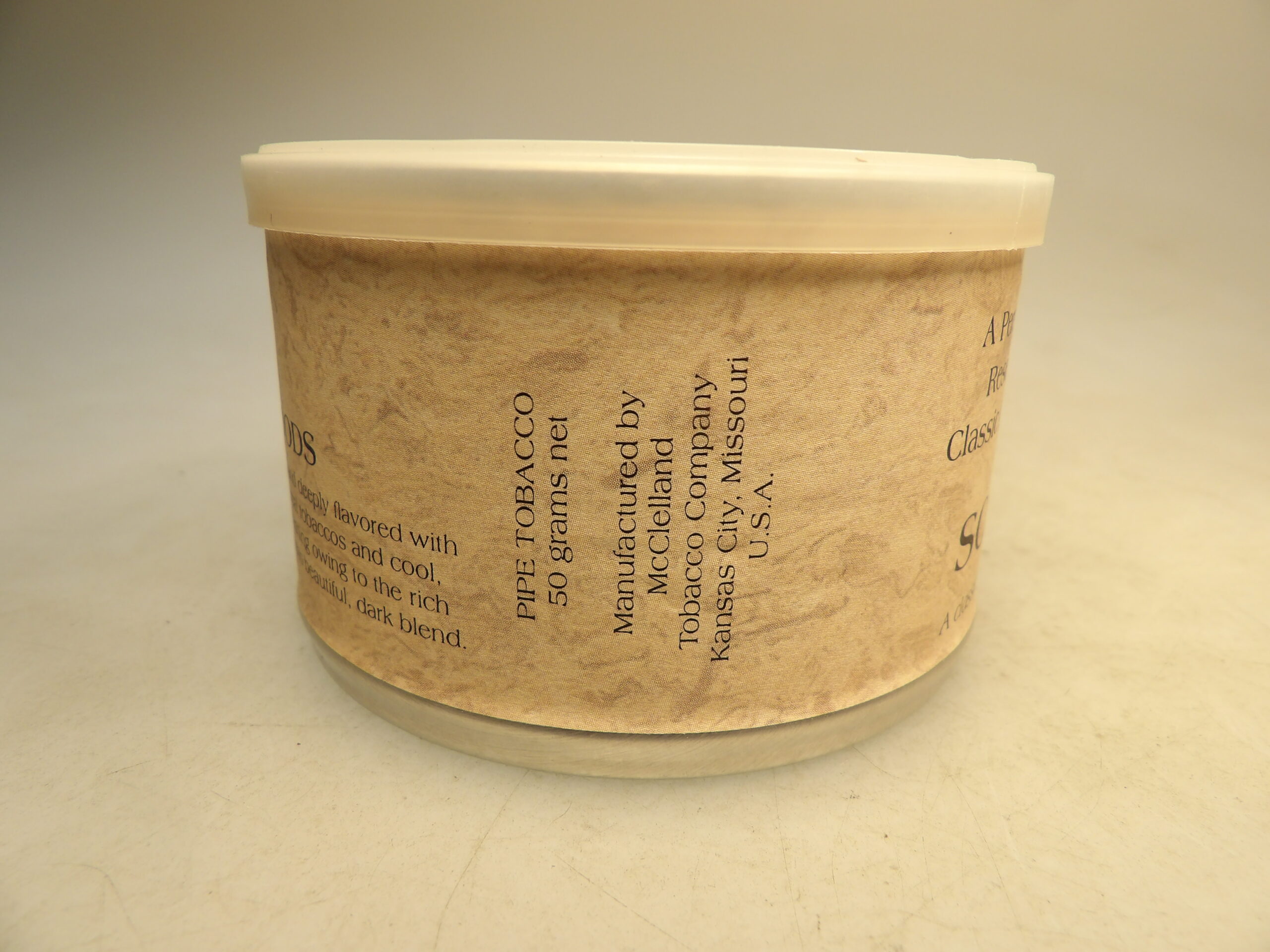DESCRIPTION: Here is an auction sale. It is a Collectible McClelland British Woods Pipe Tobacco Sealed 50g Tin 2004 Out of Production. This tobacco is out of production. Full, rich, and dark, heavy with fragrant Latakia, spiced with premium Macedonian tobaccos. Lightly sweetened with matured Virginias, this distinguished Oriental mixture is slow burning and cool smoking. It offers richness and depth plus unparalleled smoothness and refinement. Good Luck Bidding and Thanks for Stopping by.