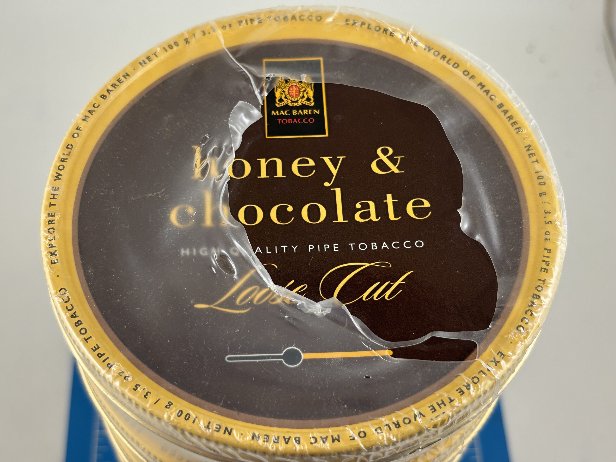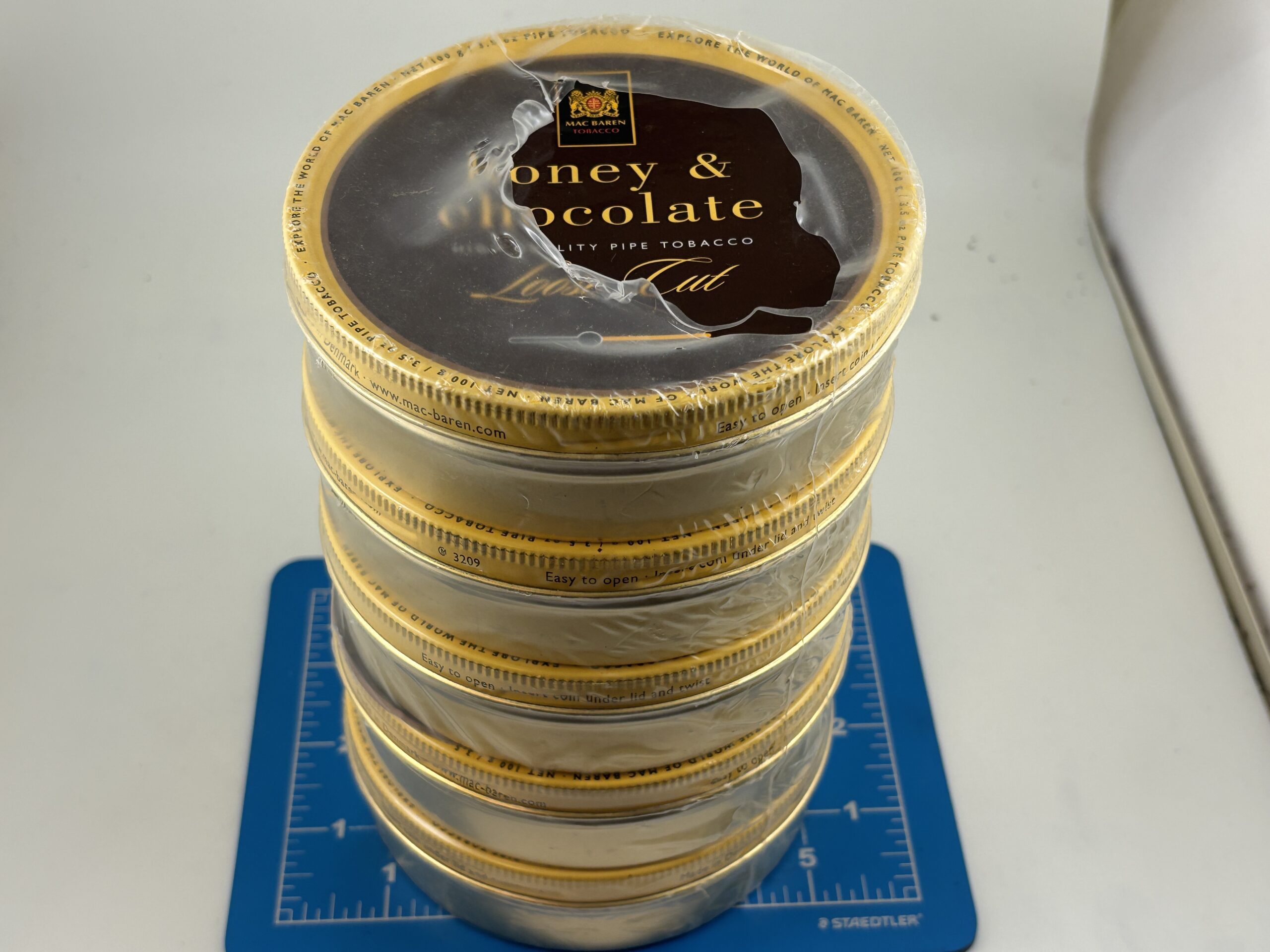 Excellent 2010 Sealed 5 Sleeve Mac Baren Honey & Chocolate Loose Cut 100g. Tins.