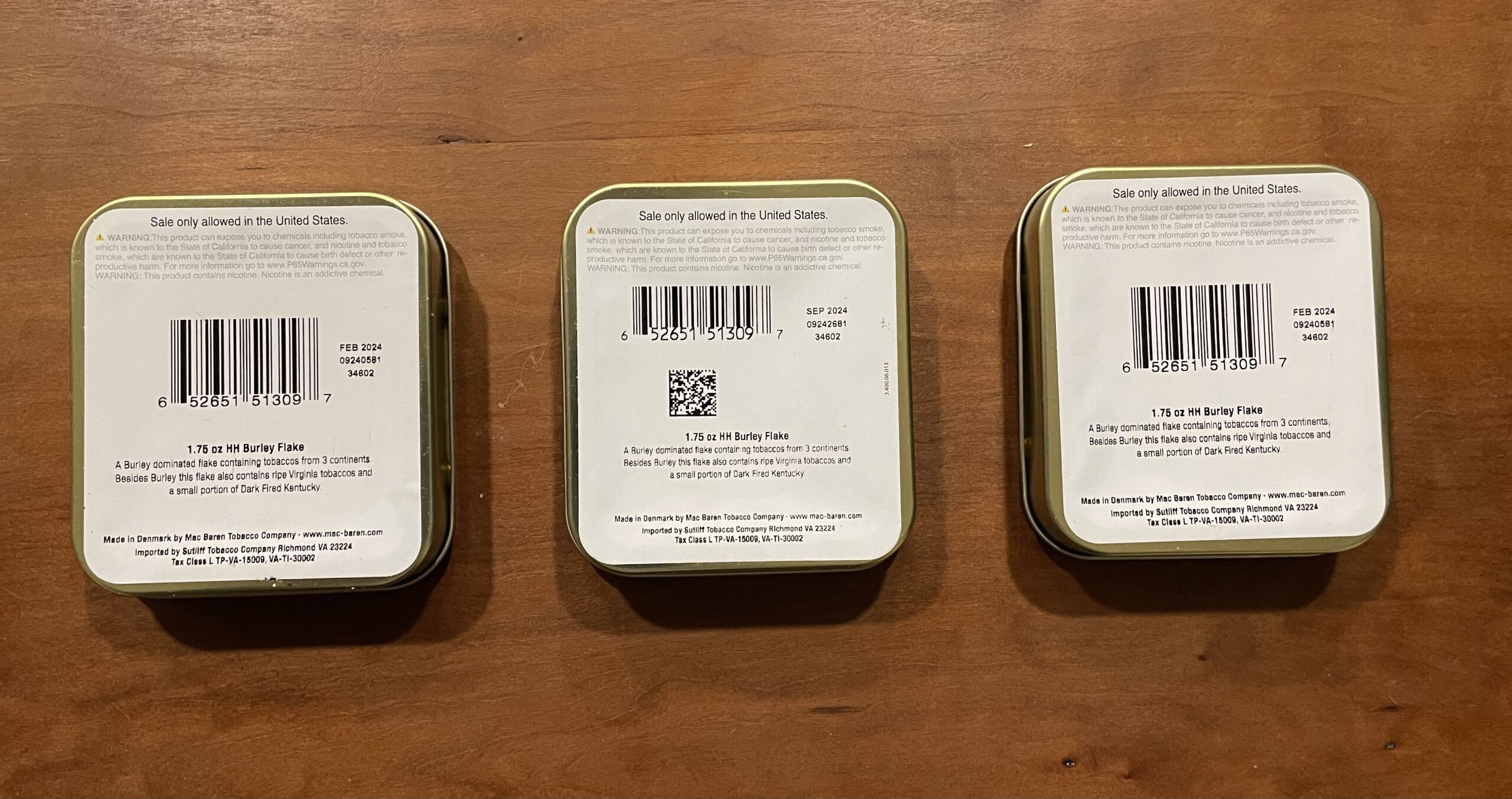 Three sealed 1.75 oz tins from 2024 of this awesome blend which was a part of the retired HH (Harald Halberg) line.