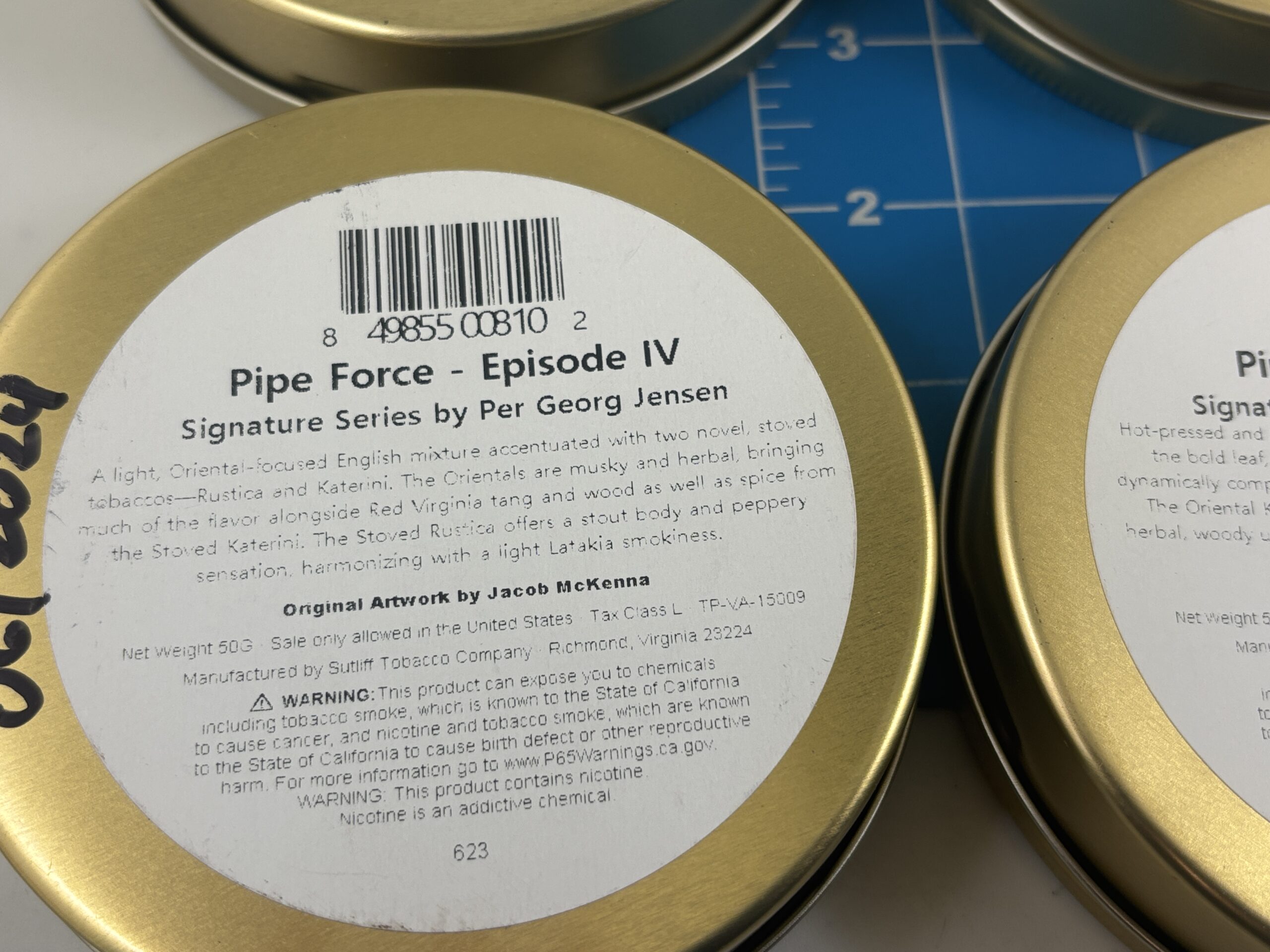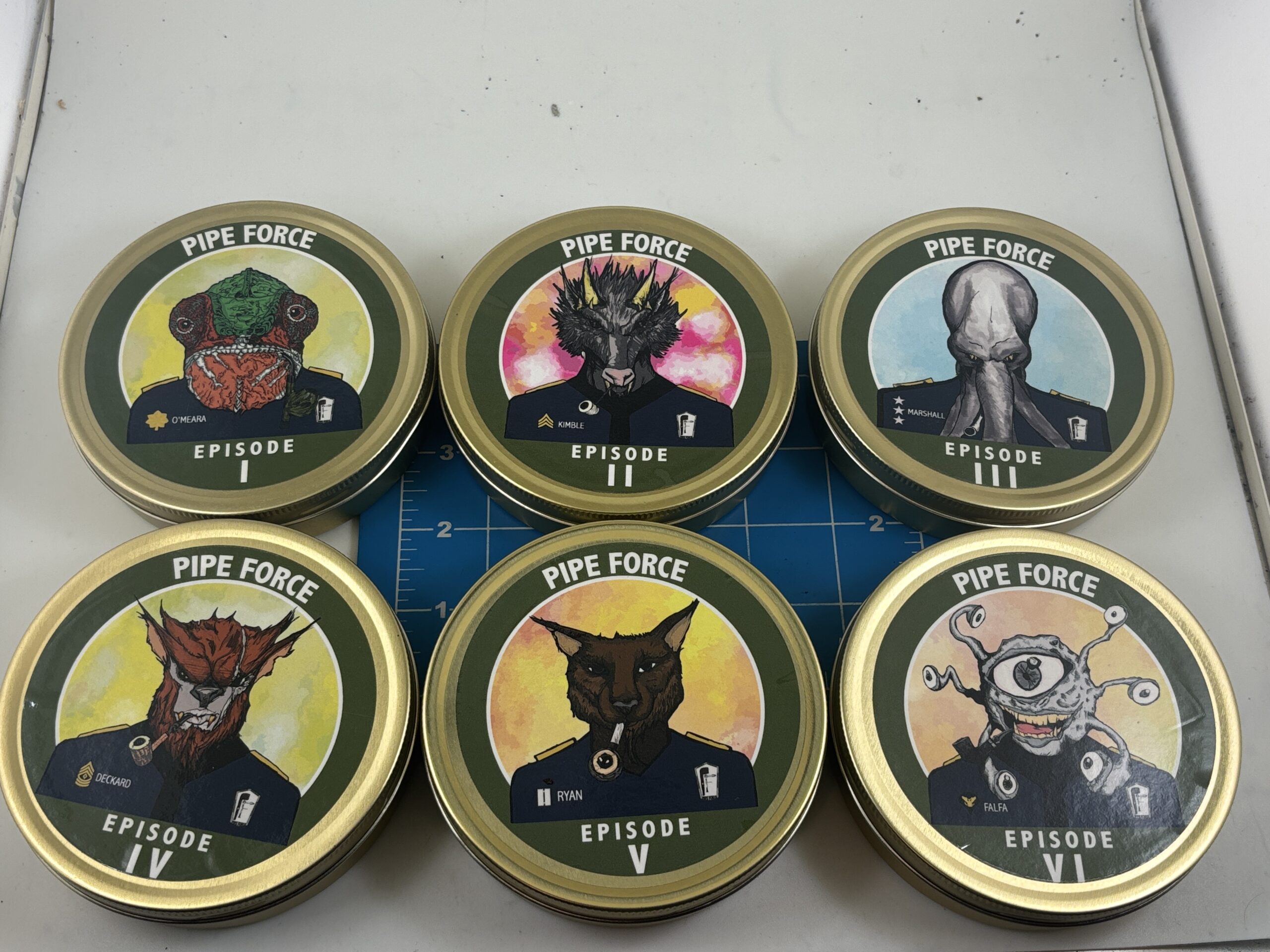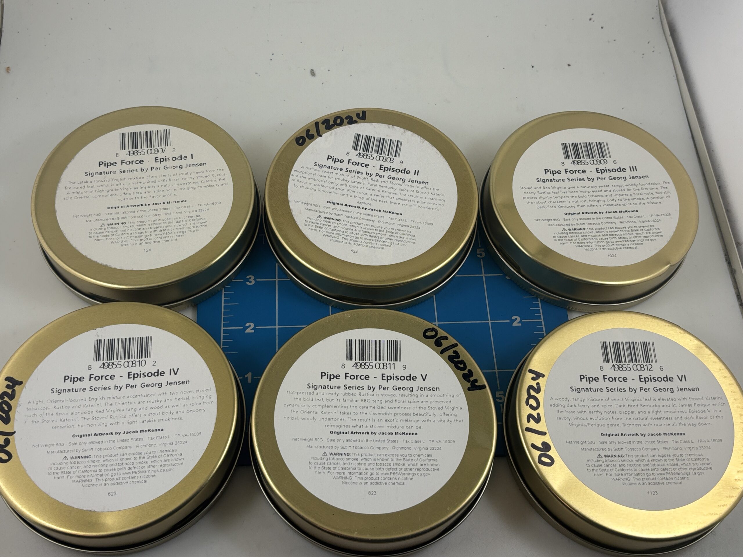 Lot of 6 Excellent Sealed Complete Pipe Force Series by Per Georg Jensen 50g. Tins.