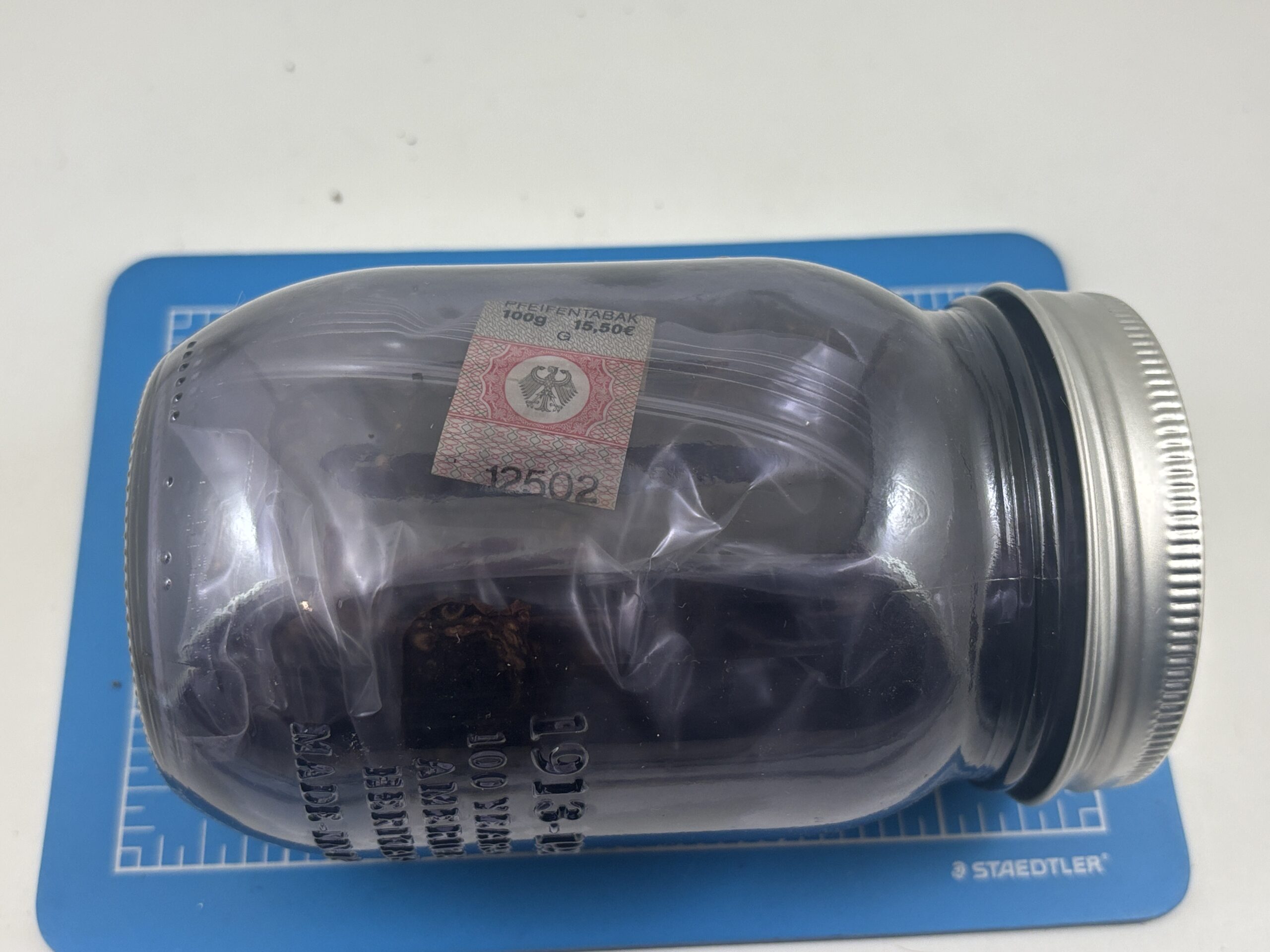 Sealed Jar of Herbert Motzek Curly Strang Packed in 2015 Pipe Tobacco