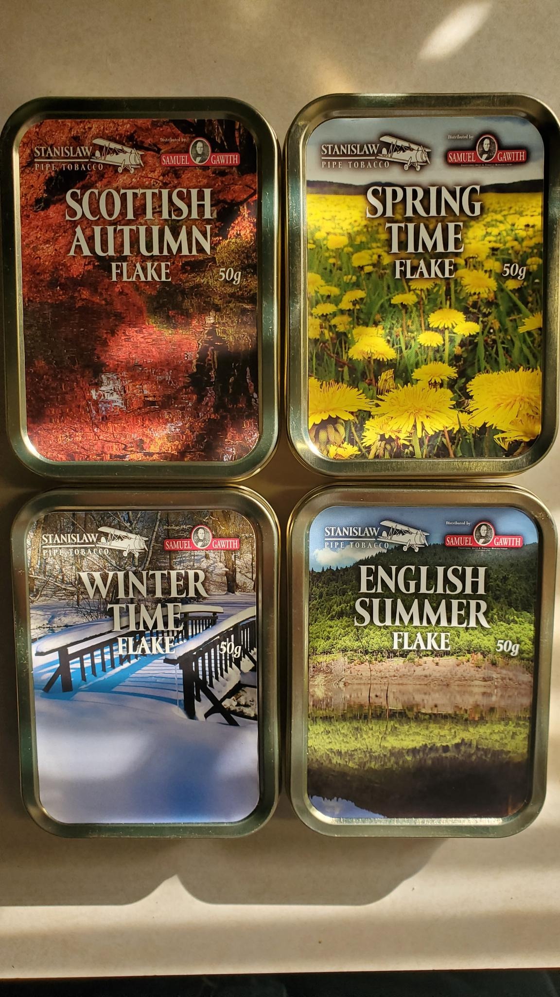 This for all 4 tins of the Stanislaw / Samuel Gawith Seasons Flake Series that is no longer in production. Aged from the original run in 2014.
