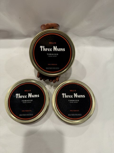 The Three Nuns coin tobacco was originally a creation of J & F Bell, dating back to the 19th century. A favorite of British authors (and friends) C.S. Lewis & J.R.R. Tolkien. In the formula from Imperial Tobacco, Three Nuns was a VaPer mixture. Pipe Tobacco Hall of Fame Inductee. Later this tobacco was made at the Orlik factory for BAT and Kentucky was substituted for Perique. The latest version, blended and manufactured by Mac Baren, follows the latter formula. 3 Tins