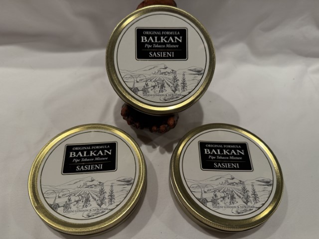 Original formula Balkan smoking mixture was created in London at the beginning of the century by the master of Tobacco Blenders who first combined the aromatic pleasures of the choicest of Macedonia and Latakia leaf with the richness of Old Virginia to give the pipe smoker an unrivaled smoking pleasure. 3 Tins Dated 2014