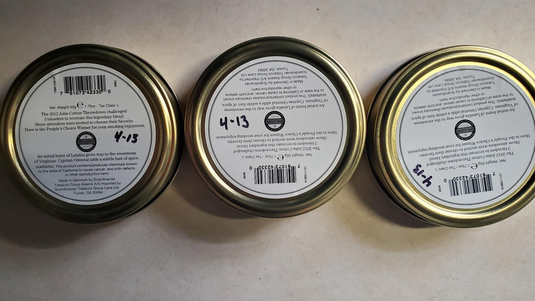 The 2012 John Cotton Throwdown Challenged 3 Blenders to Recreate This legendary Blend. Show Attendees were invited to choose their favorite. Here is the People's Choice Winner for your smoking enjoyment.