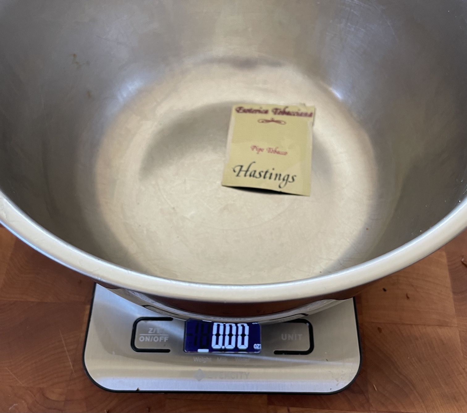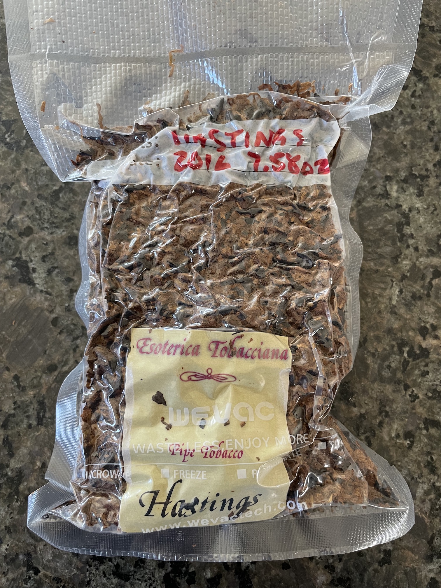 I went through my mason jar stage of tobacco acquisition. This auction is for 7.58 ounces of Hastings from 2016. When received, it was opened and placed in a mason jar and aged for nearly seven years, and hasn't been opened until now. I've now placed it in a vacuum storage bag with the cutout of the original label - moisture level is perfect and it has not dried out at all.