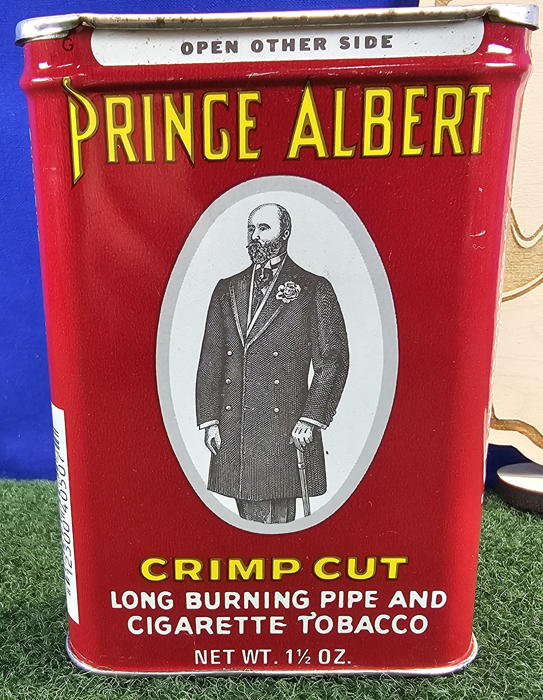 I don't know that they keep statistics for the most popular tens available at the antique store, but Prince Albertsons will be right up there. It was so cool finding some unopened ones and I just had to share. This auction is for 1 tin of Prince Albert tobacco, unopened.