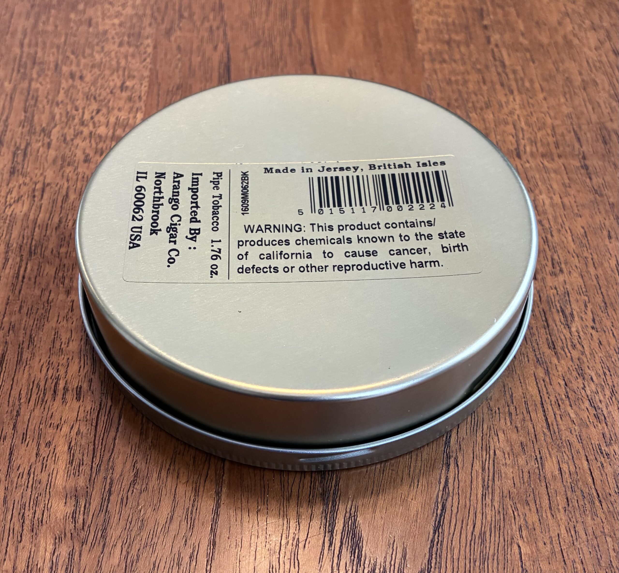 Tin condition is excellent with no swelling, rust, or dings of any kind. Stored carefully in a cool, dark cellar since purchase. The import label, factory stamping, and all edges of the seal are clean.