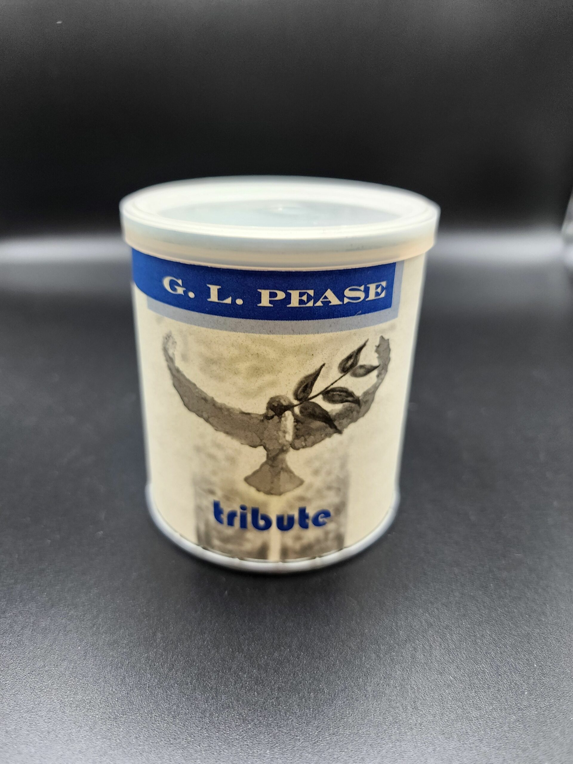 2oz sealed tin of G.L. Pease's Tribute pipe tobacco.