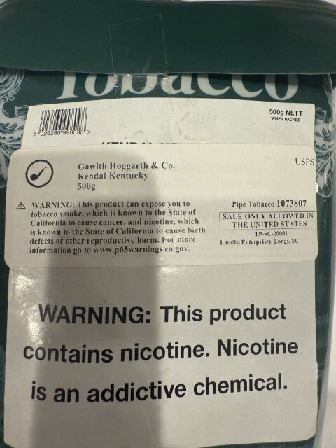This entry in the Gawith, Hoggarth & Co. Kendal line is one hundred percent dark fired Kentucky leaf. Exceptionally full and well rounded. Kendal Kentucky is a full-bodied, full strength tobacco of 100% African grown (Malawi, Uganda, and Tanzania) variation of the actual Kentucky seed. These tobaccos are fire cured which gives them their distinctive aroma and flavor. This is a fairly strong, but exceptionally cool tobacco for the lovers of dark fired Virginias.