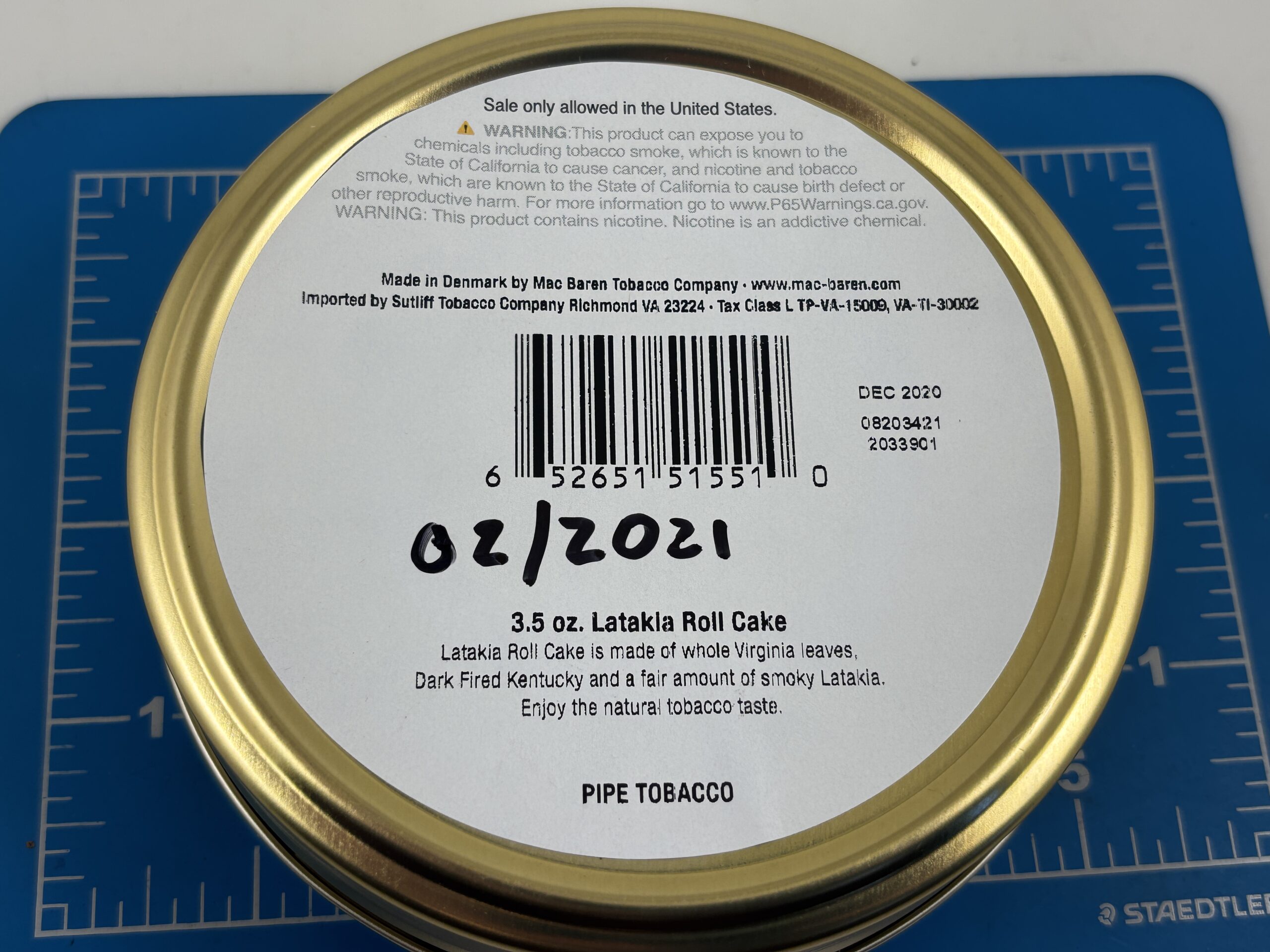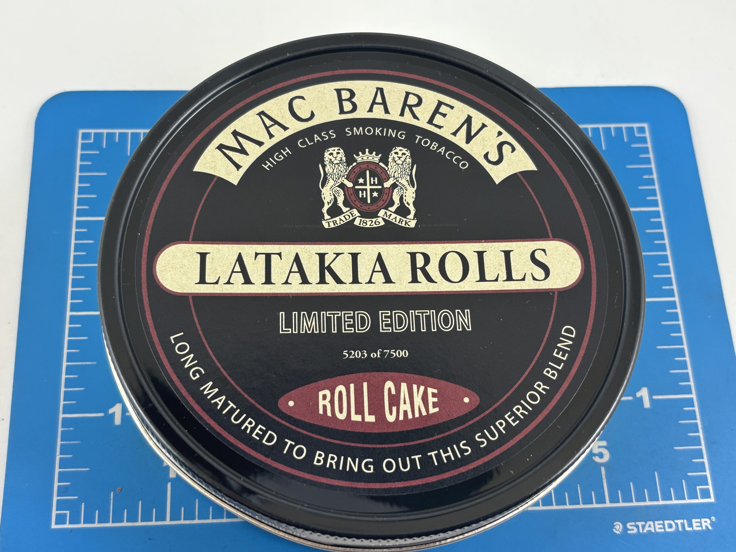 Excellent Sealed 2021 Mac Baren Latakia Roll Cake Limited Edition No. 5203 of 7500 3.5oz. Tin.