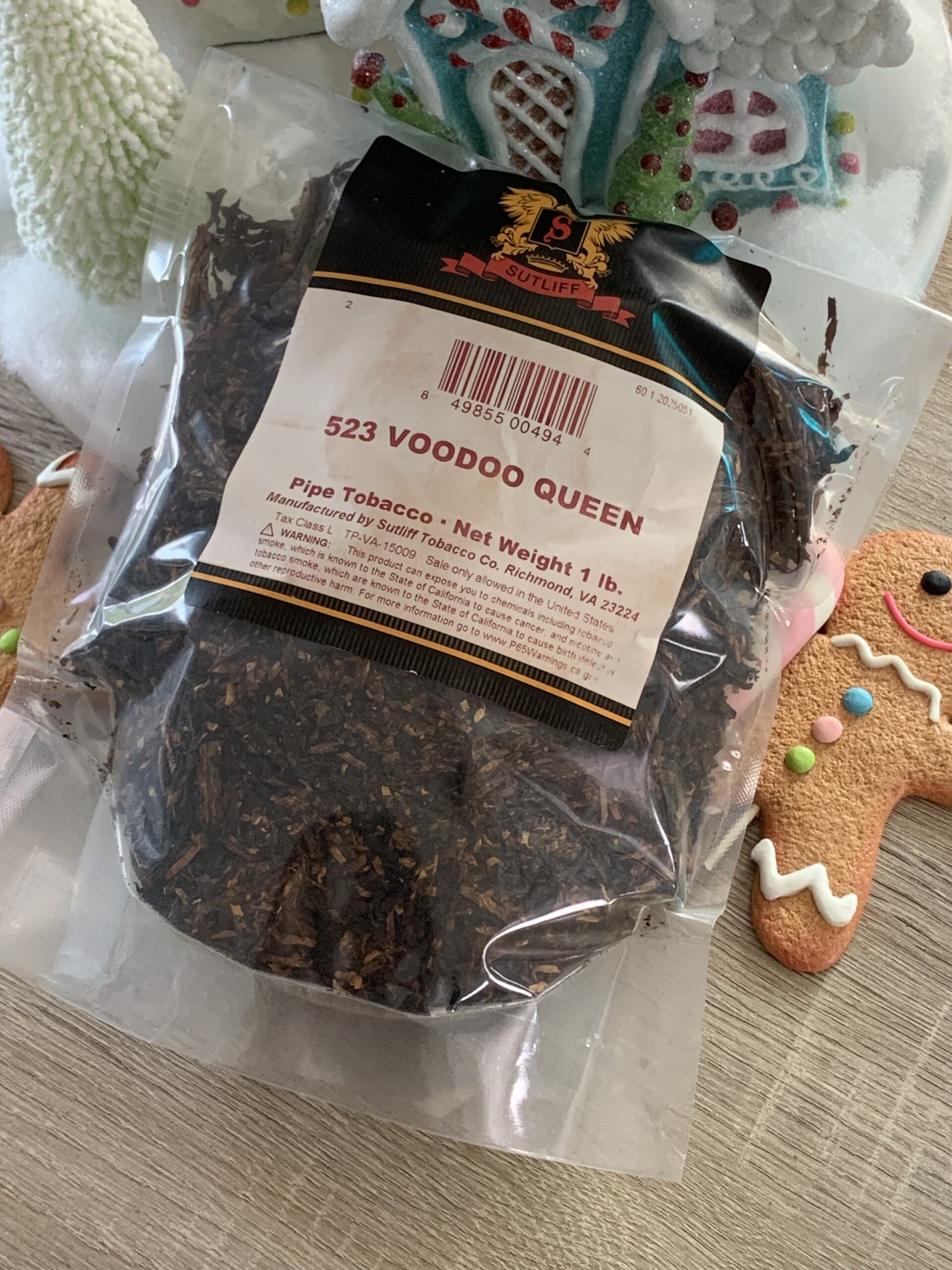 Voodoo Queen is a unique approach to the light Latakia blend. A light amount of Latakia and a hint of Perique are combined with Virginias and Burleys that have been imbued by a bit of mocha, pressed and roughly rubbed-out for a long, cool burn. For aromatic English fans and those who like chocolate flakes, Sutliff Voodoo Queen is a must-try.