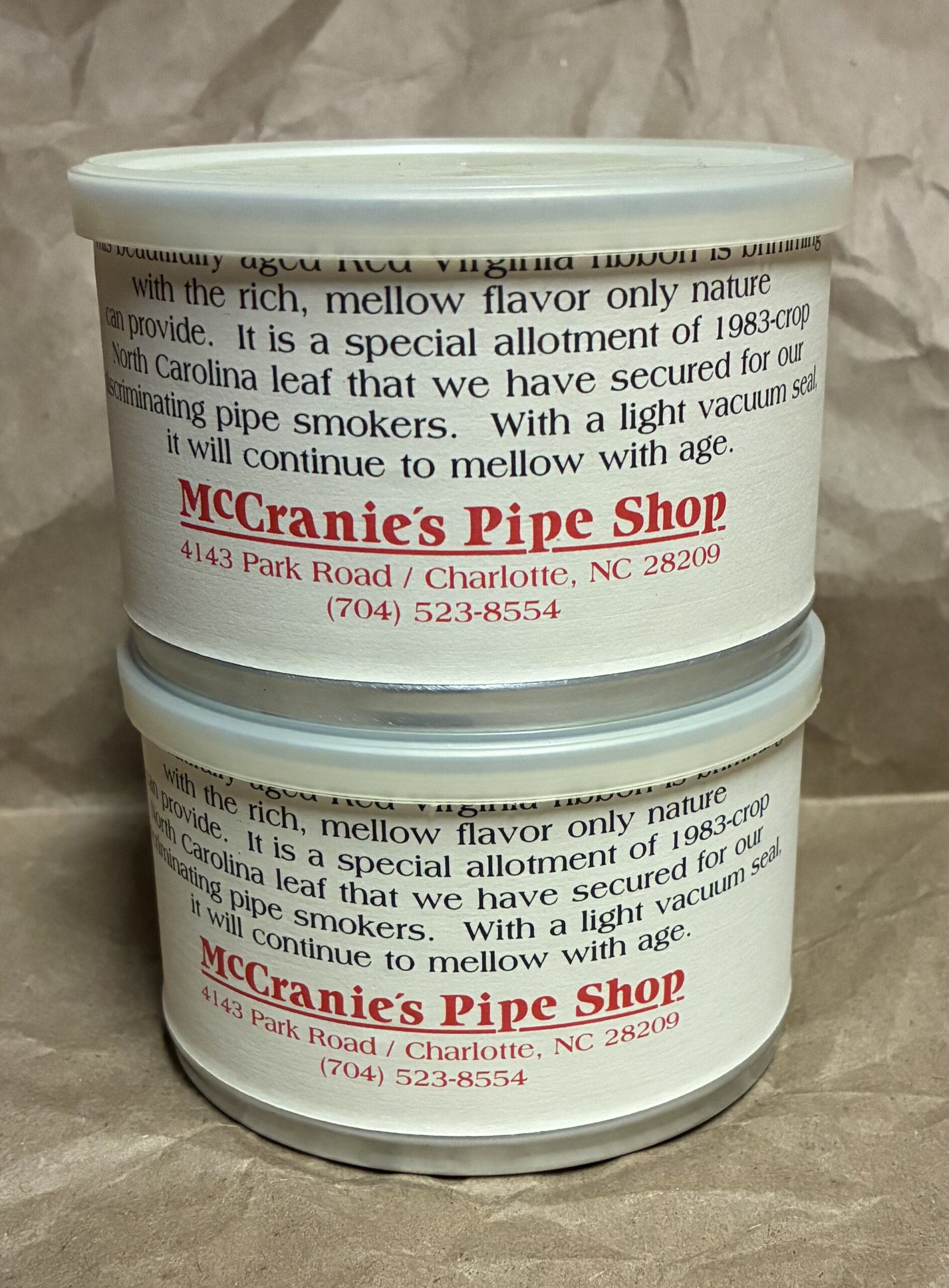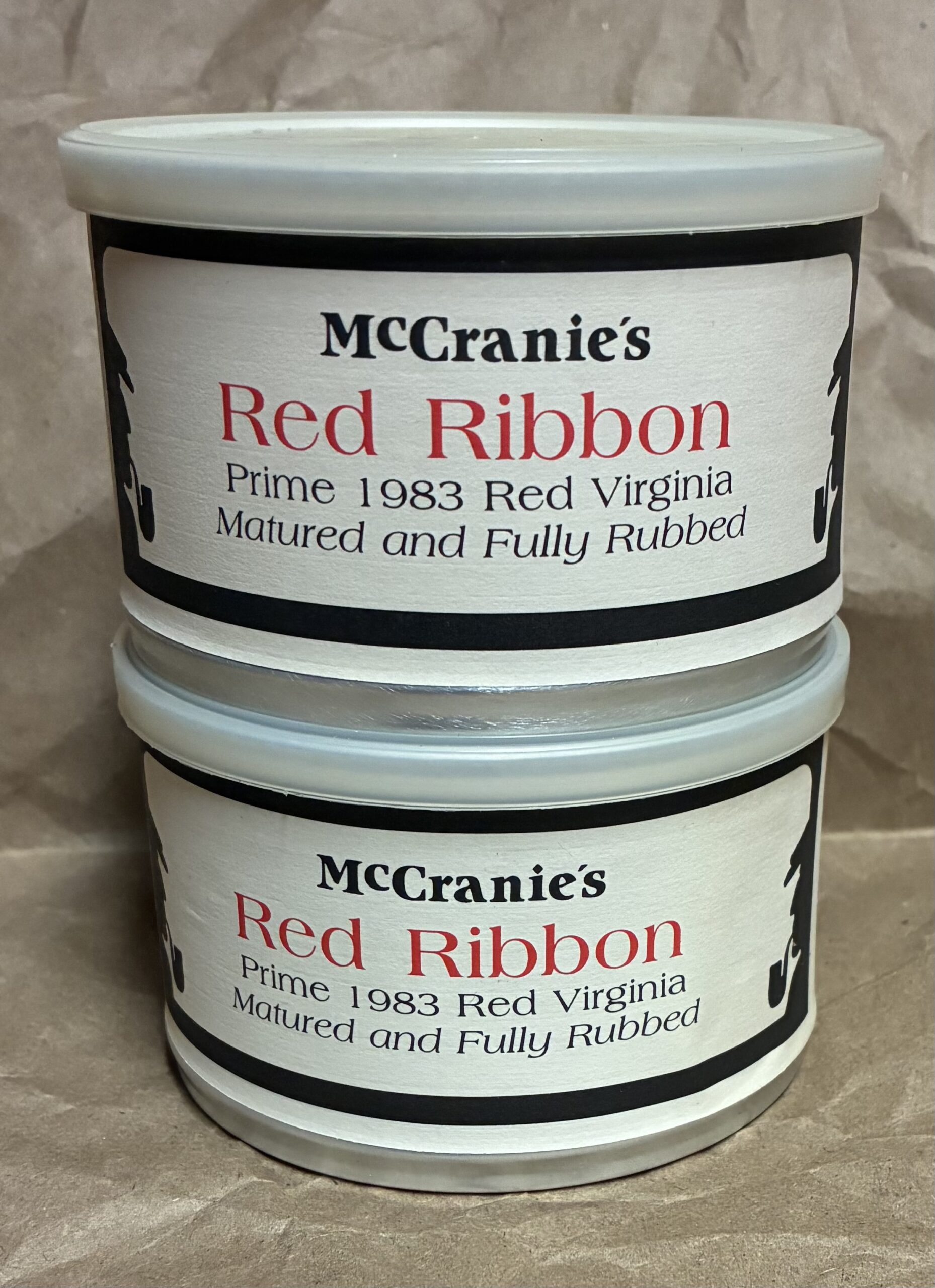 You are bidding on two cans of vintage McCranie’s Red Ribbon pipe tobacco. This is the famous original 1983 crop tinned in 1999. Two 50g sealed tins. Kept indoors.