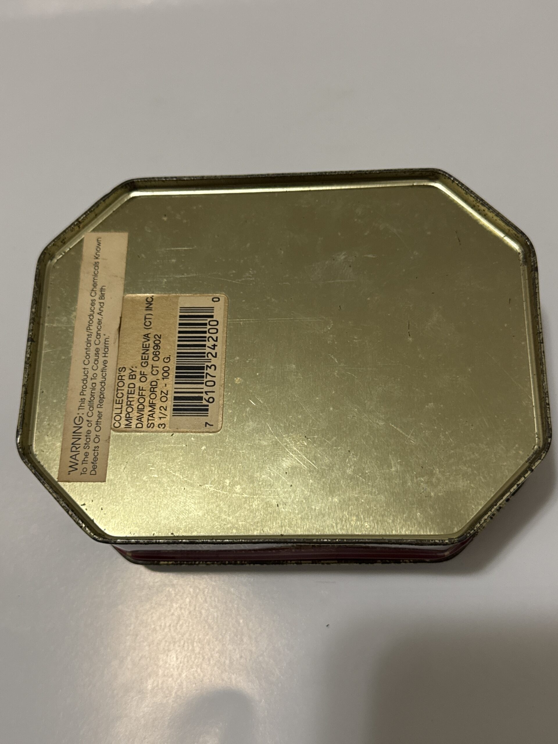 PURVEYORS TO THE ROYAL DANISH COURT EST 1864. This paint can of tobacco is over 40 years old. 2 oz. The tobacco is in very good condition.