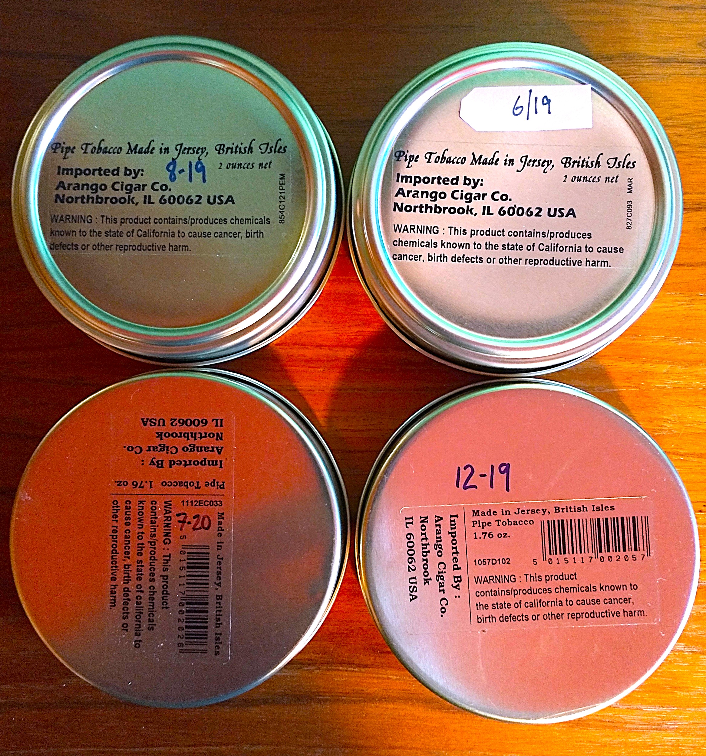 Four nicely aged, SEALED tins of Esoterica & Germain's Pipe Tobacco. These are all 5-6 years old as you can see from the printed dates when I first purchased them.