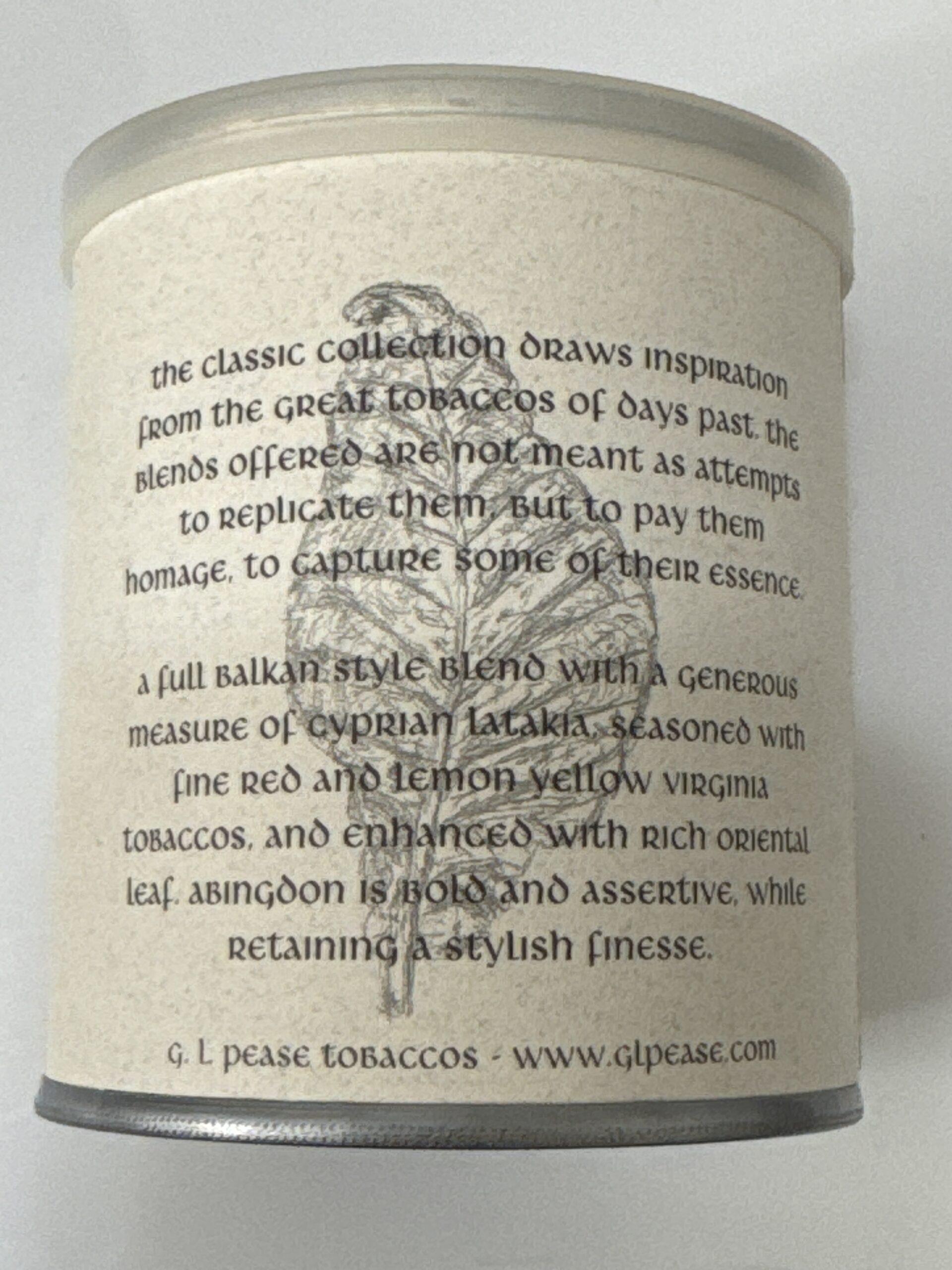 TOBACCOS AND ENHANCED WITH RICH ORIENTAL LEAF ABINGDON IS BOLD AND ASSERTIVE WHILE RETAINING A STYLISH FINESSE. 2004. 2oz