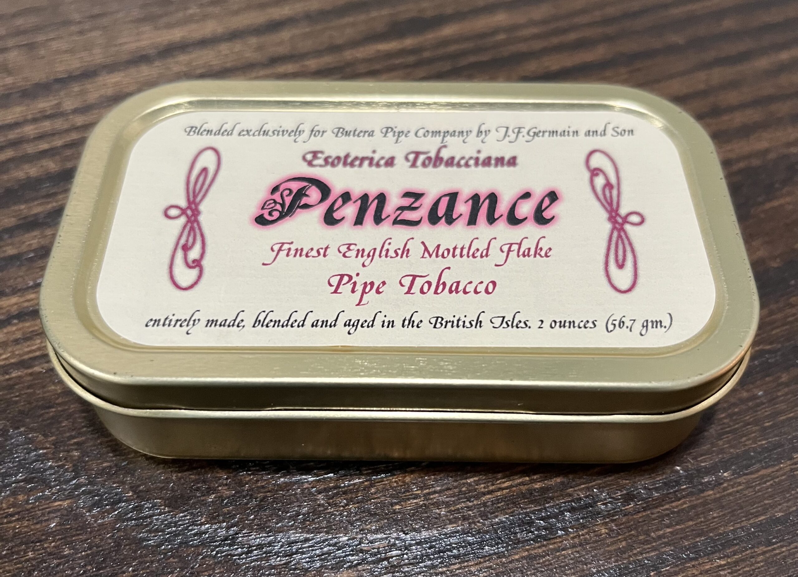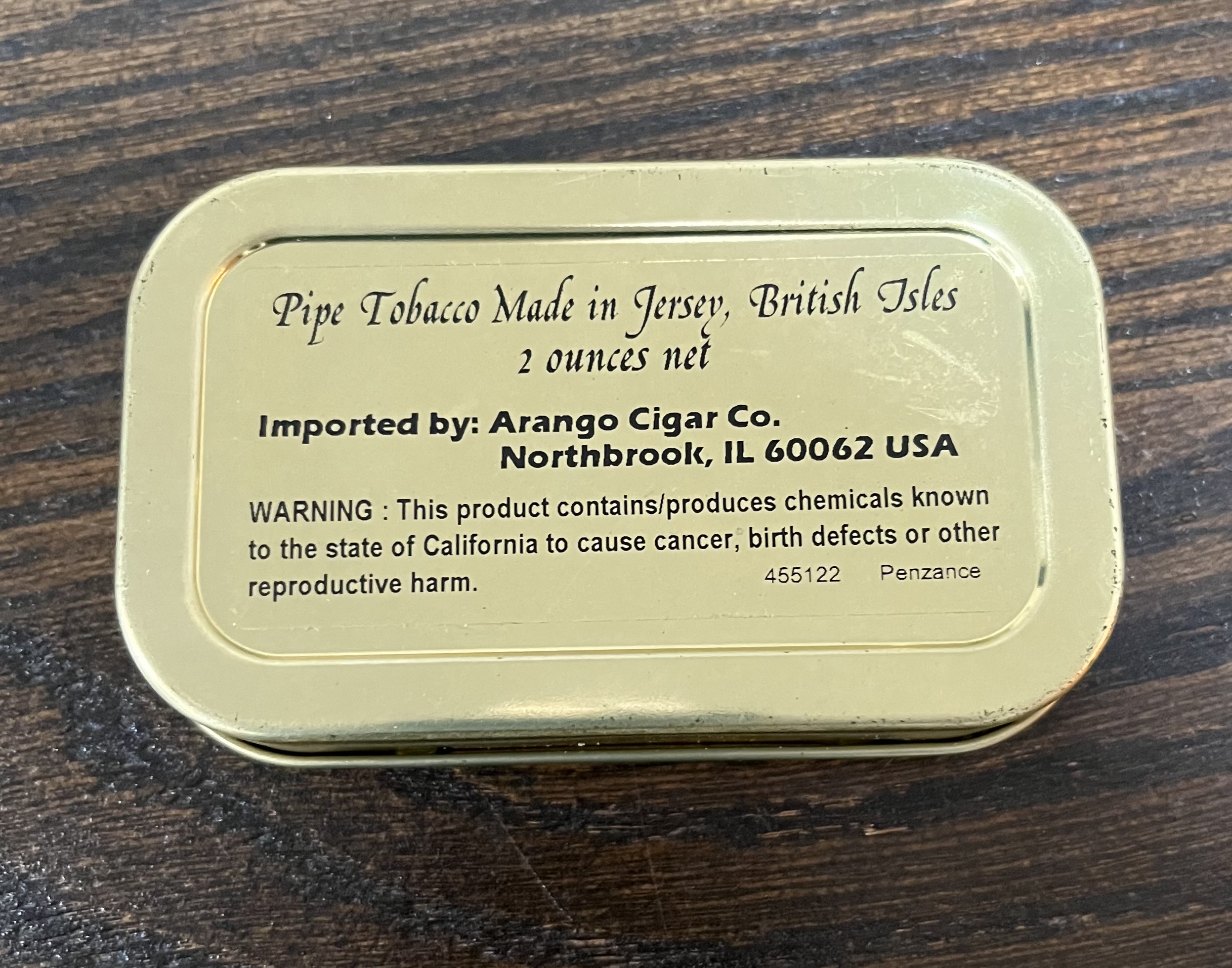 This is a 2oz tin of Esoterica Penzance originally purchased in 2014. The tin is in excellent condition, with a secure seal and no surface rust.