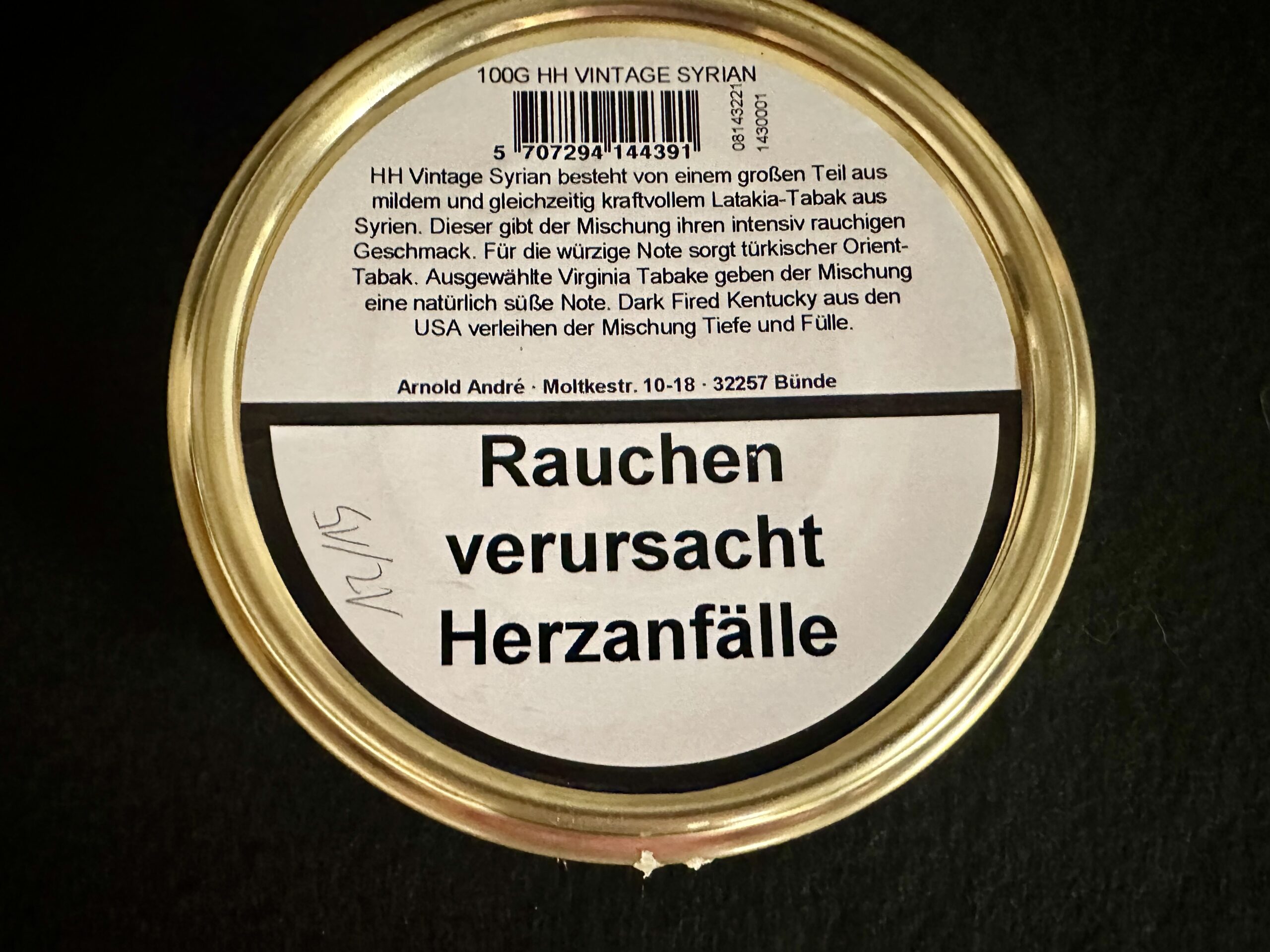 This 7-day auction is for one sealed 100g tin of 2014 MacBaren HH Vintage Syrian. Originally purchased in Austria.