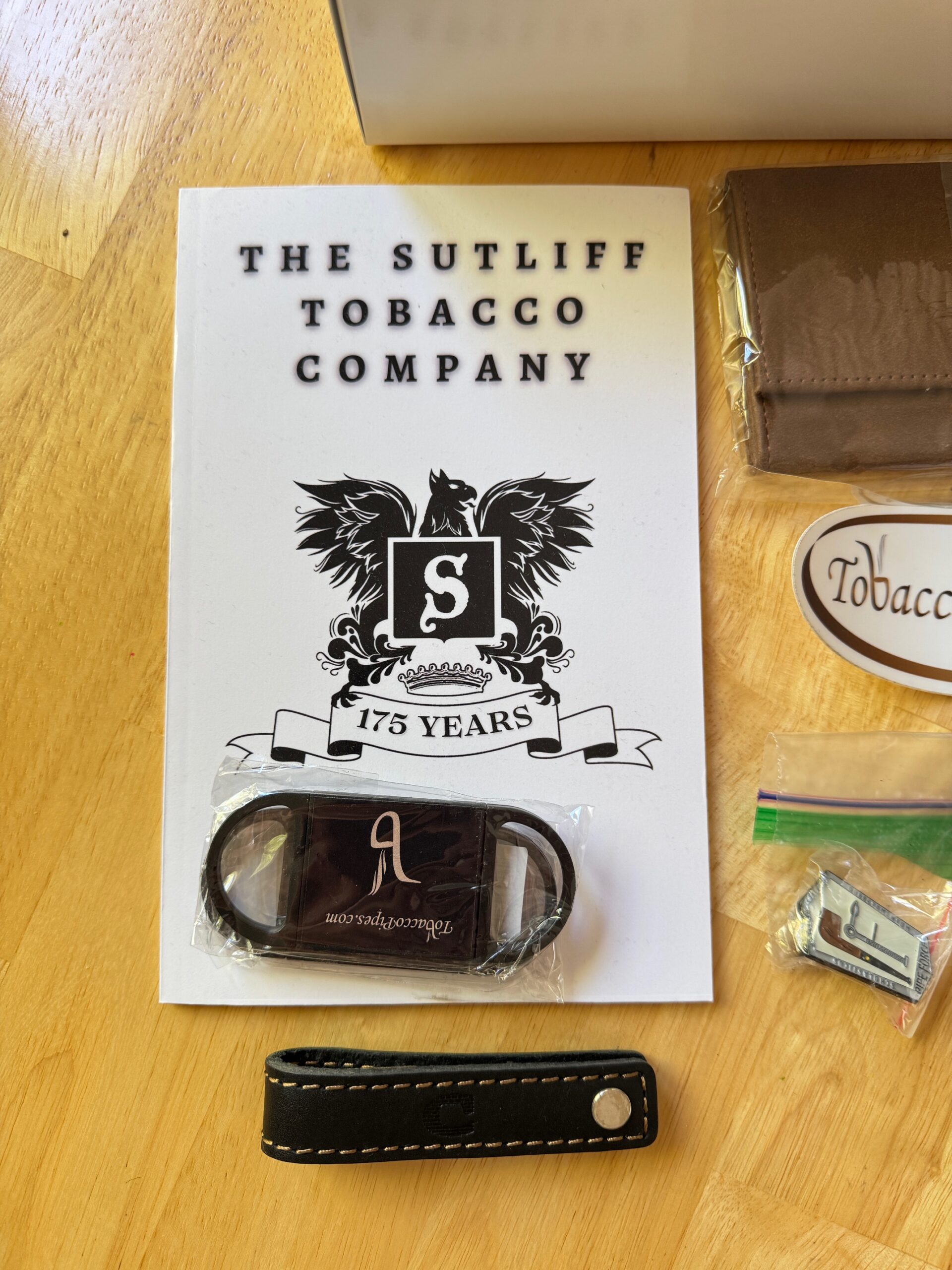 • A stamped leather Sutliff tobacco pouch (still in plastic)