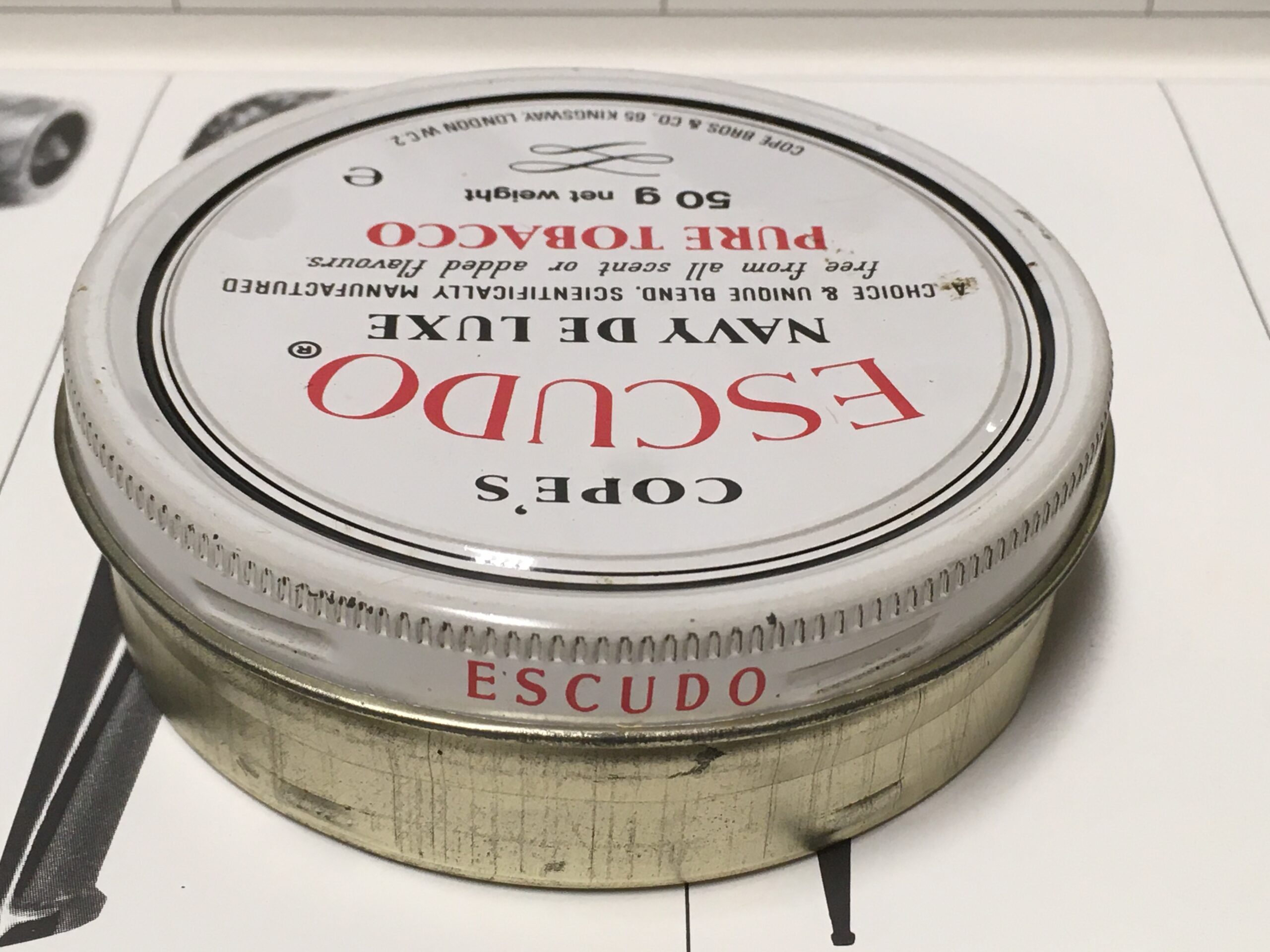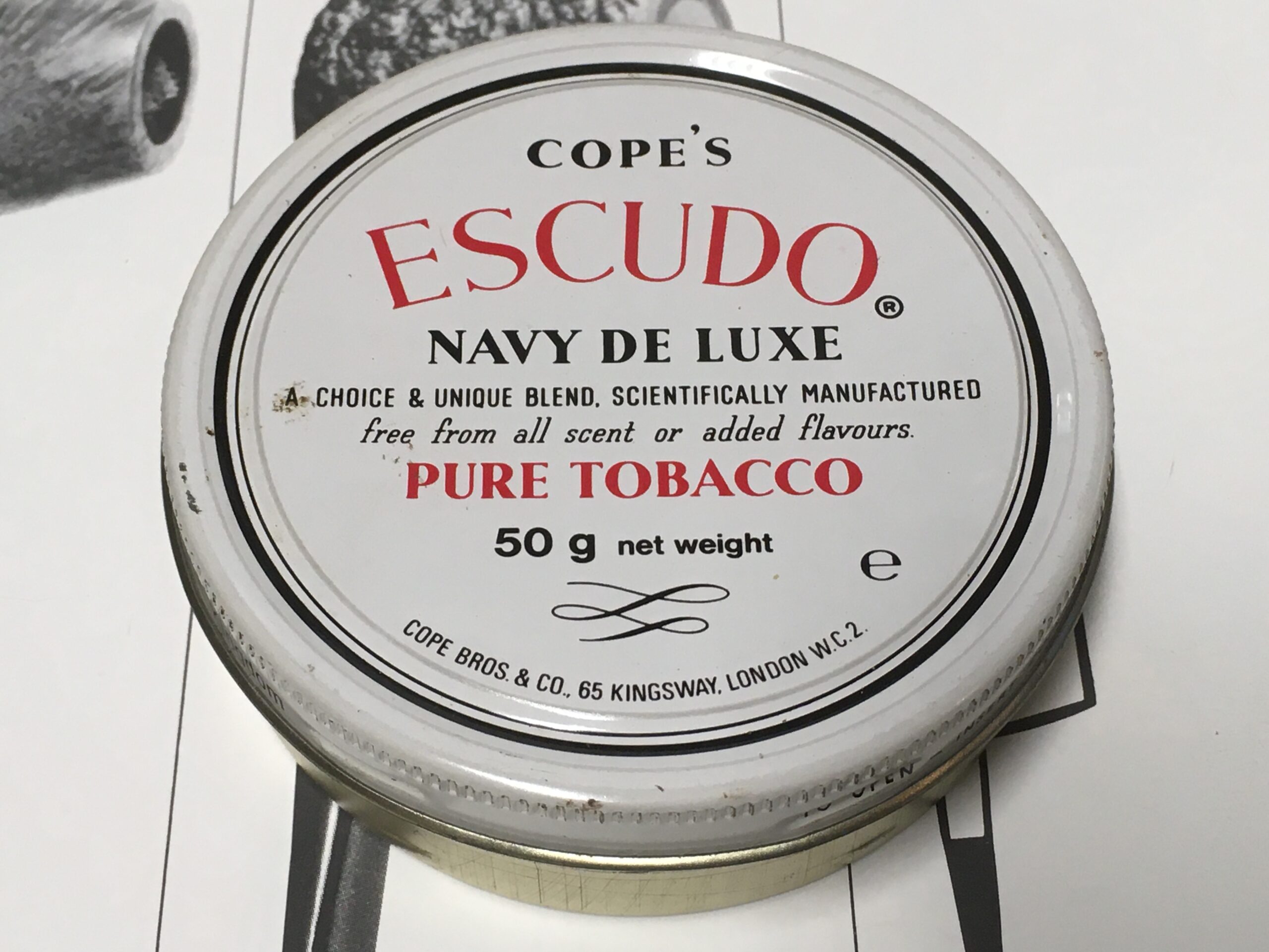 Vintage COPE'S ESCUDO - NAVY DE LUXE Pipe Tobacco, 50 g, in undisturbed tin. This is the real deal, original.
