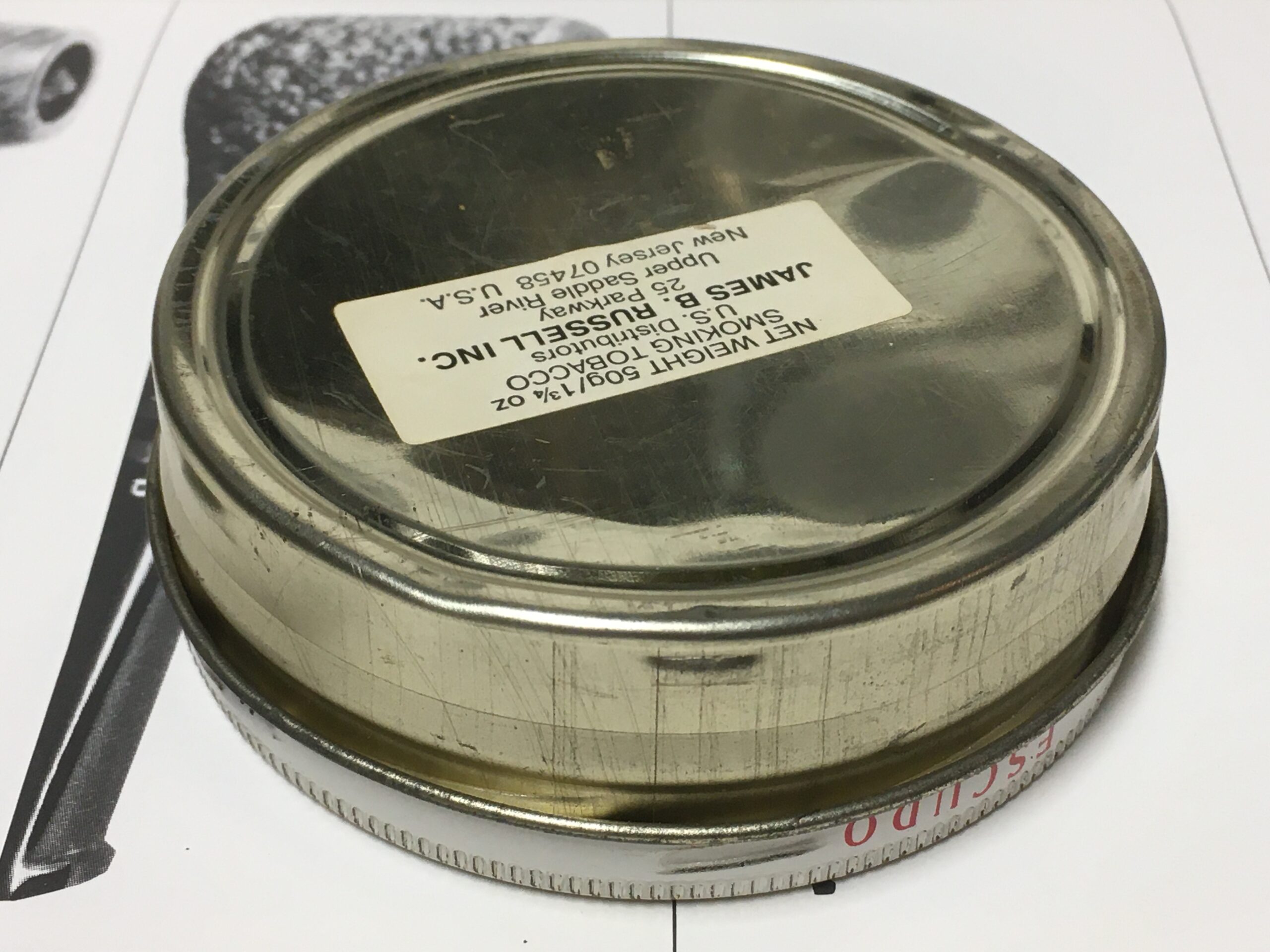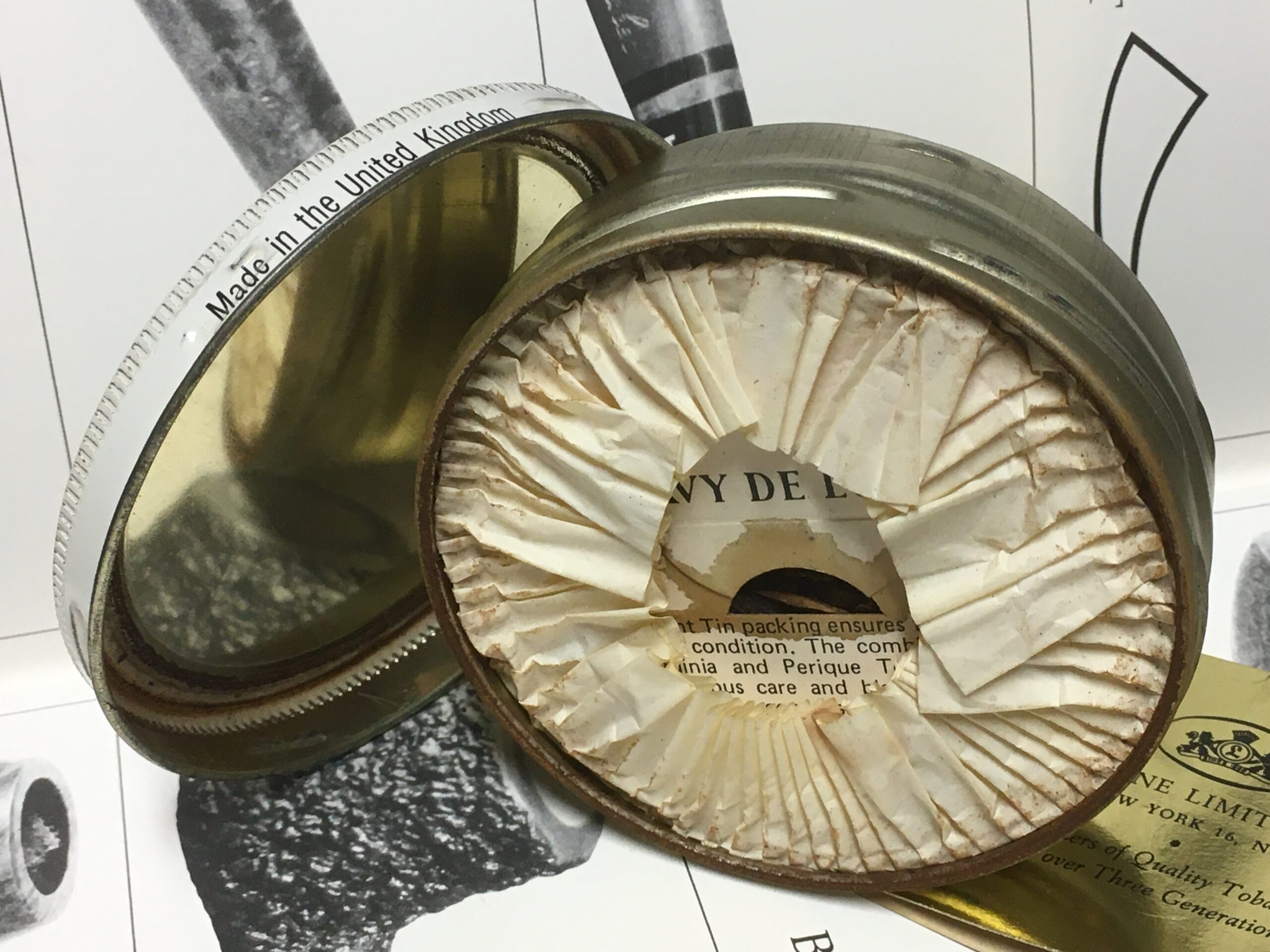 Tin was opened long ago, but the contents appear to be undisturbed. Has been stored in a simple zip-loc sandwich size bag only. Tobacco is dry. Some oxidation to the tin, with a couple of little dents in the bottom.