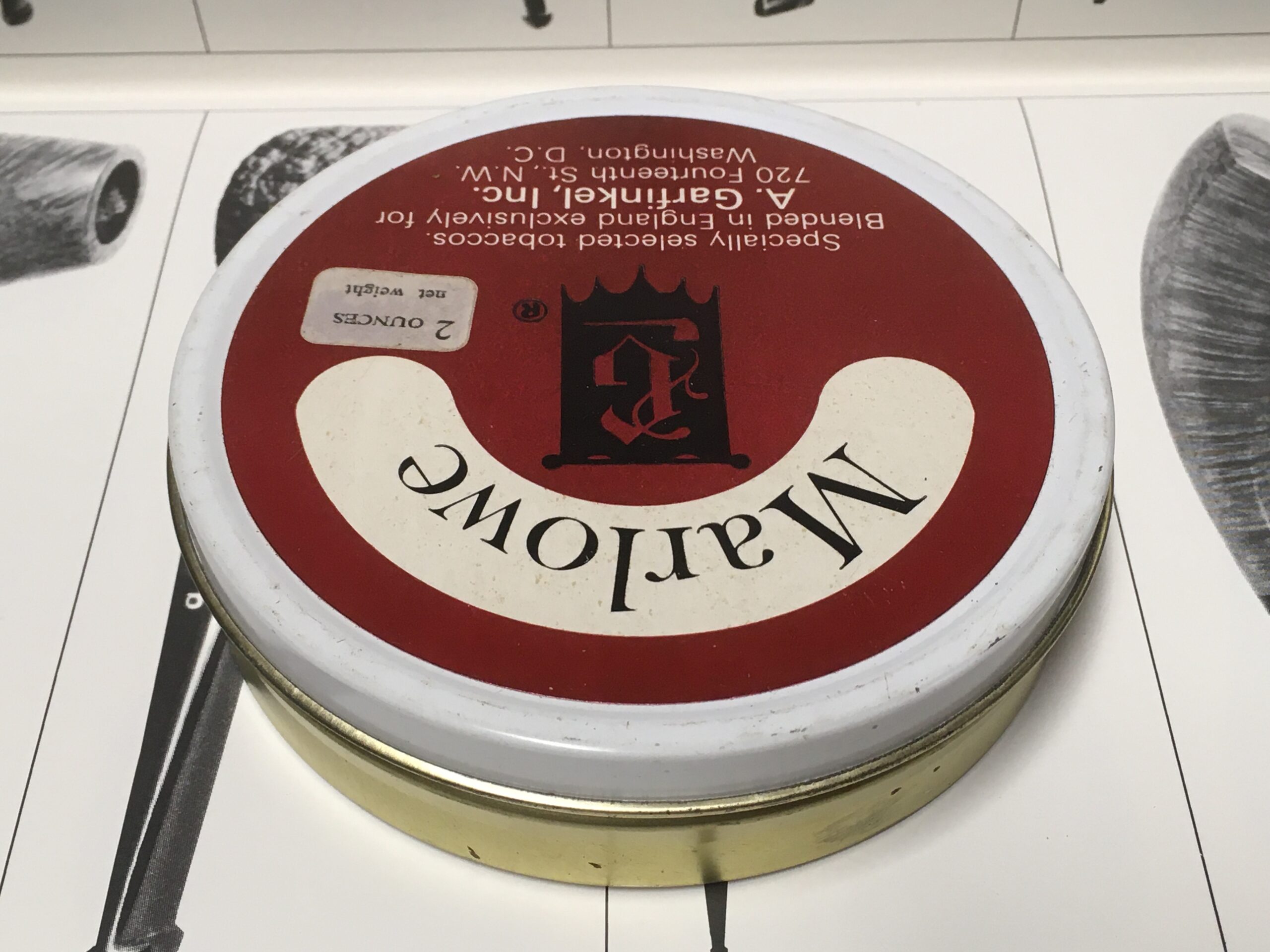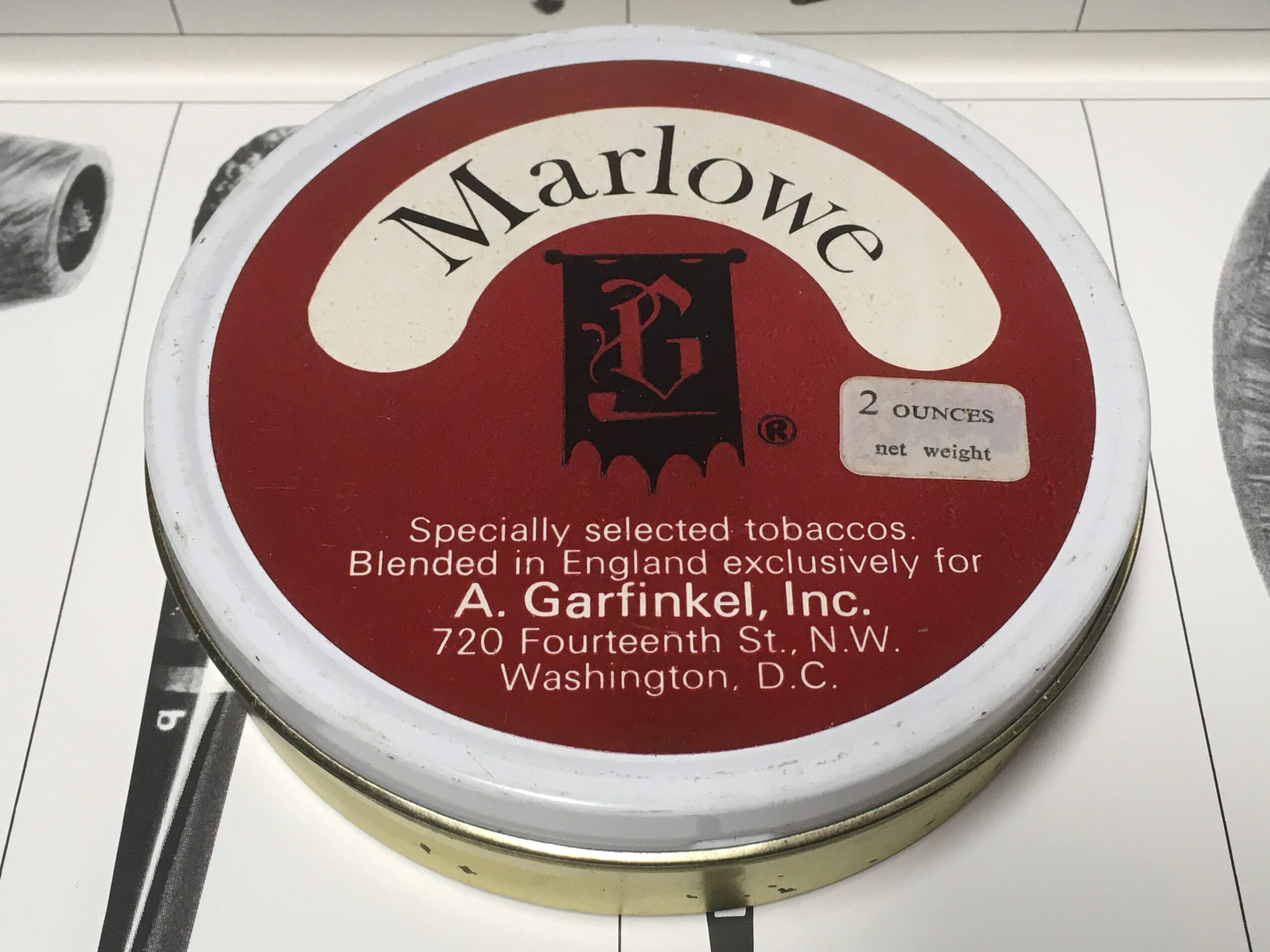 Vintage A. Garfinkel, Inc., MARLOWE pipe tobacco, blended in England, 2 ounces, in undisturbed tin. This is the real deal, original.