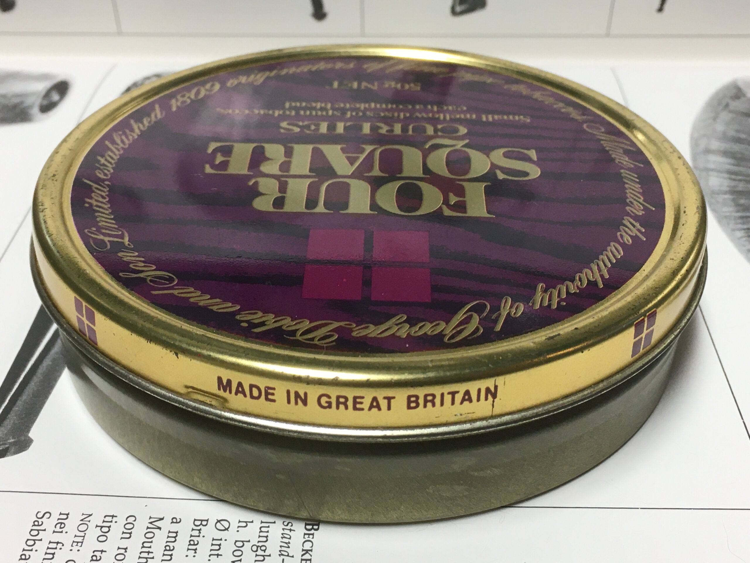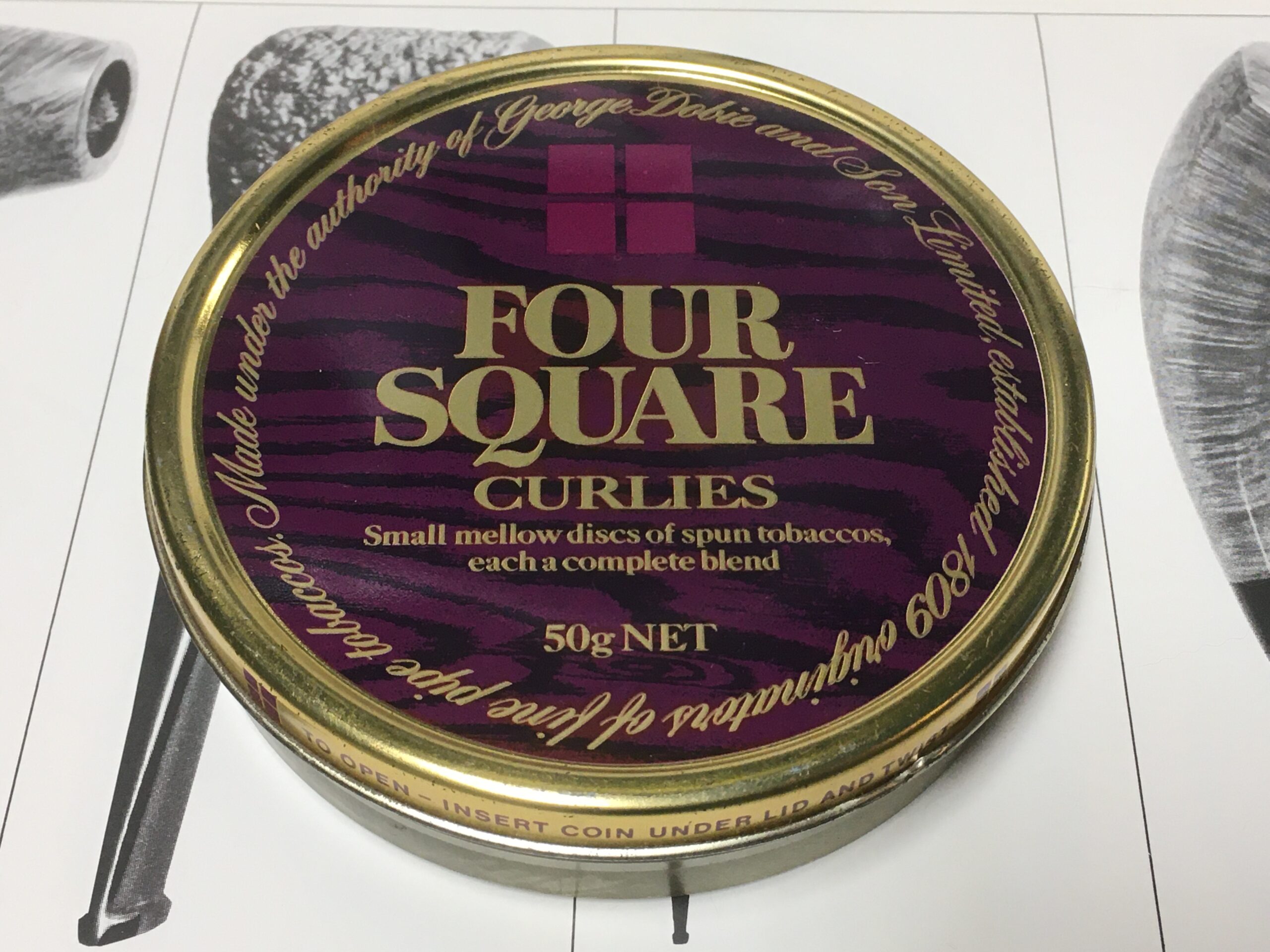 Vintage George Dobie, FOUR SQUARE, CURLIES pipe tobacco, 50g NET, in undisturbed tin. This is the real deal, original.