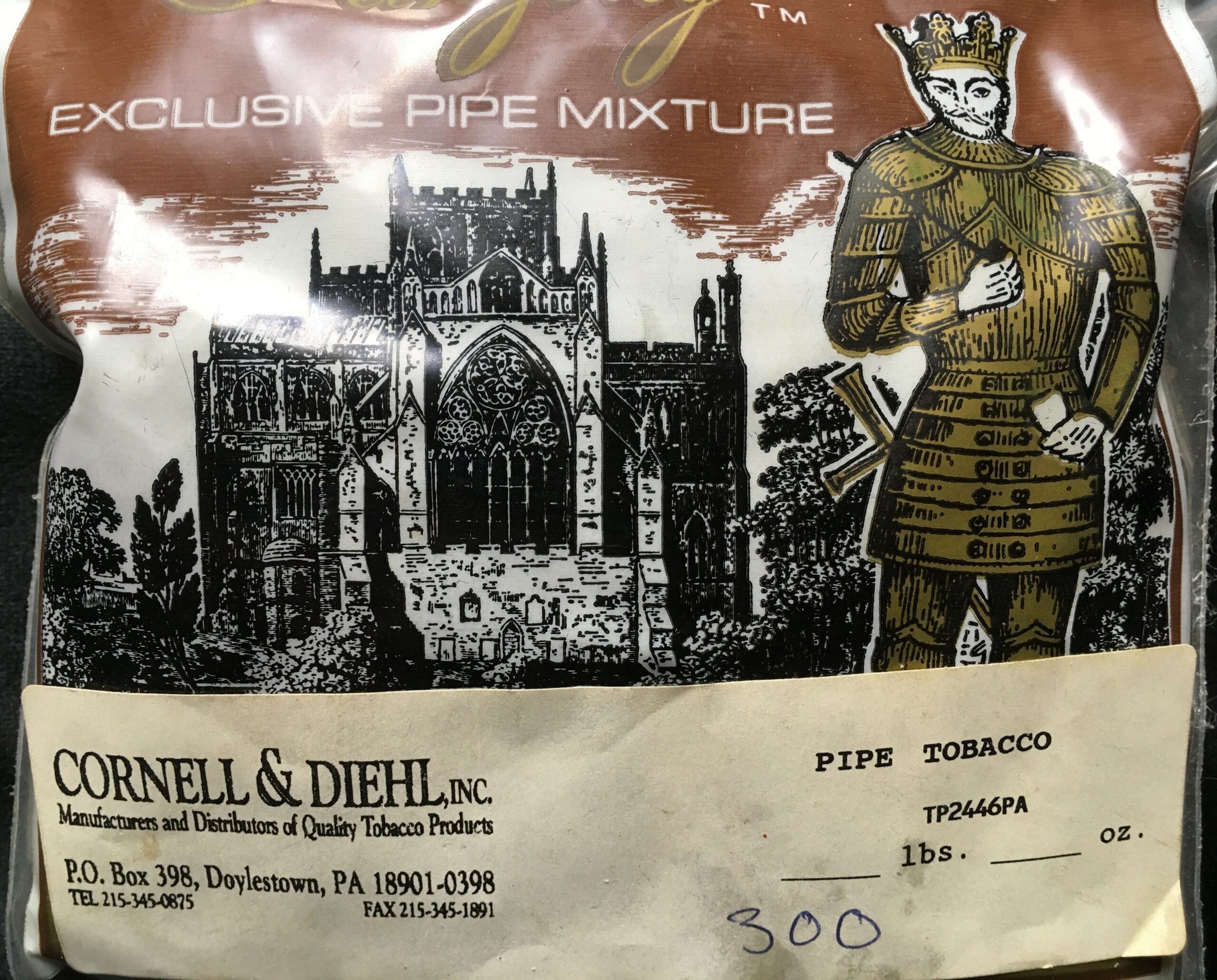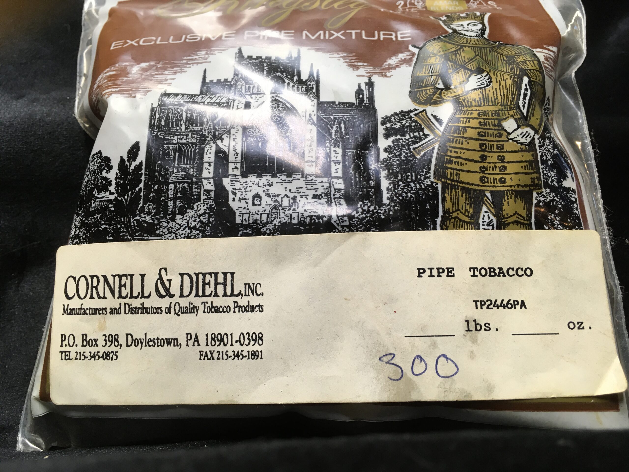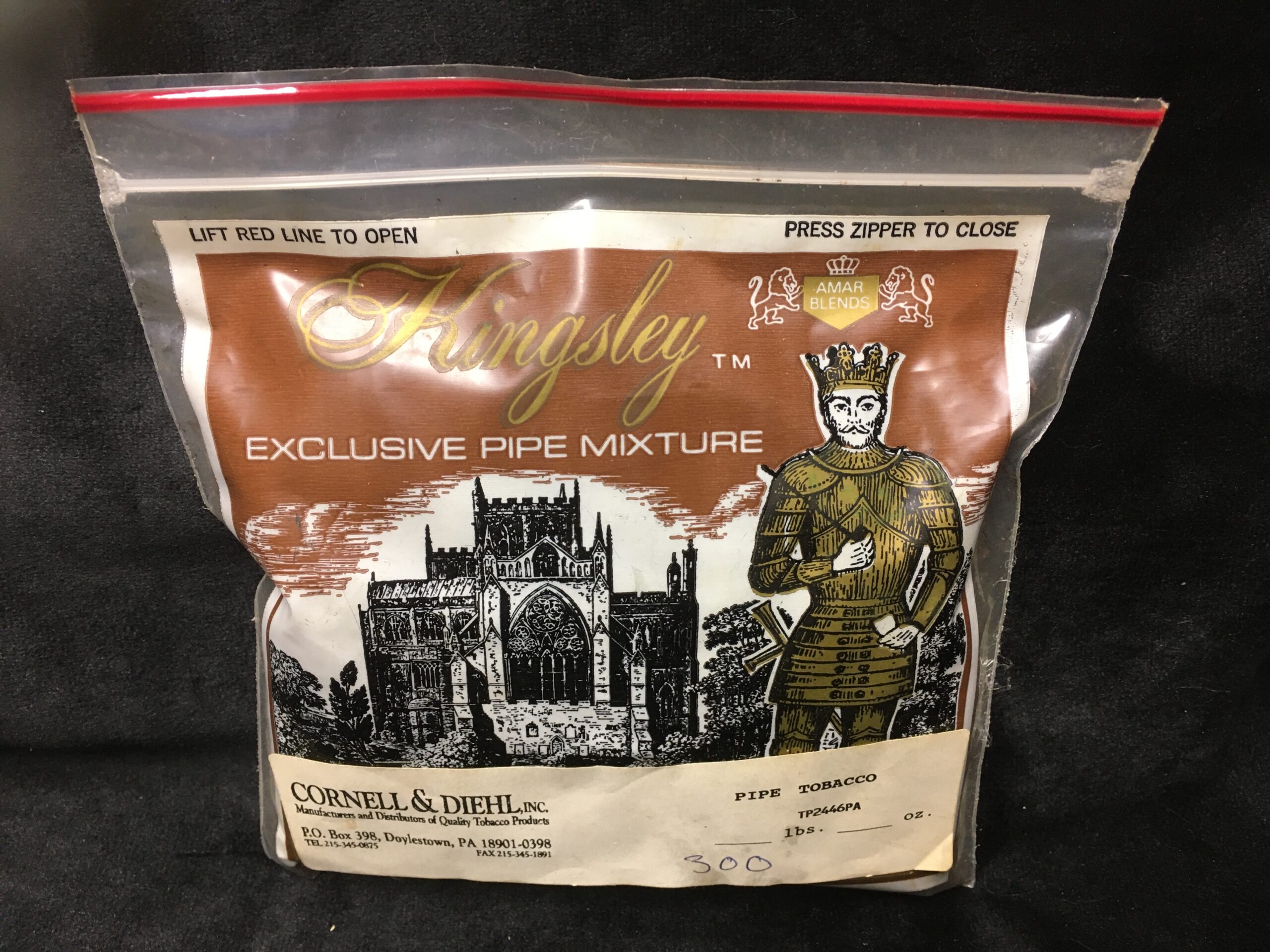 Vintage Cornell & Diehl, Inc., KINGSLEY EXCLUSIVE PIPE MIXTURE (1990s) 300 g, unused in original bag. Hand written "300", is presumably for a 300 oz. bag when packed.