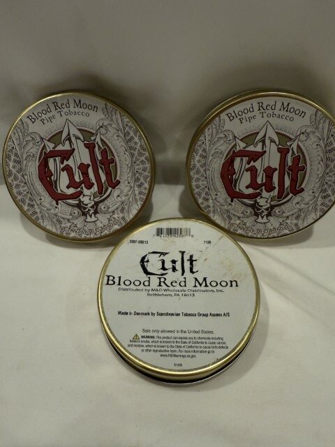 3 TINS Cult Blood Red Moon Pipe Tobacco is an exceptionally gentle, smooth, easy-smoking blend, with a cherry note.