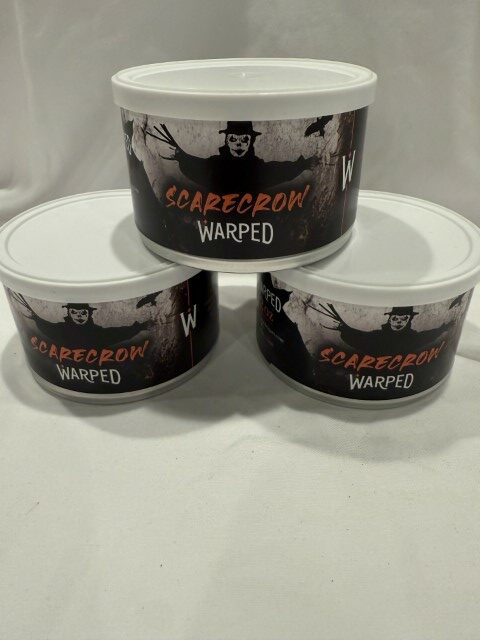 Warped's limited-edition, Halloween-themed release, Scarecrow combines proprietary Red Virginia Cavendish — a rich, naturally sweet variety crafted from deep 2017 Reds and 2019 Orange-Red flue-cured leaf — with 2014 White Burley and vintage Dark air-cured leaf, yielding notes of malty chocolate and warming spices. Subtle top notes of chocolate, vanilla, and caramel enhance and complement the natural tobacco character of these select components, and the entire mixture is pressed for days before being sliced into old-fashioned crumble cakes, further marrying the flavors and enhancing its aging potential. Only 4,000 units were made for this seasonal, limited-edition run. 3TINS