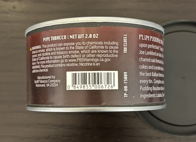 Seattle Pipe Club - Plum Pudding Bourbon Barrel Aged - Sealed 2 Ounce Tin