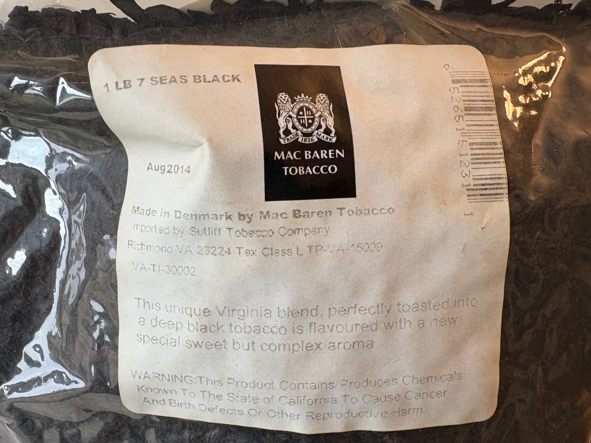 Unopened 1 pound bag of 2014 Mac Baren 7 Seas Black Blend.